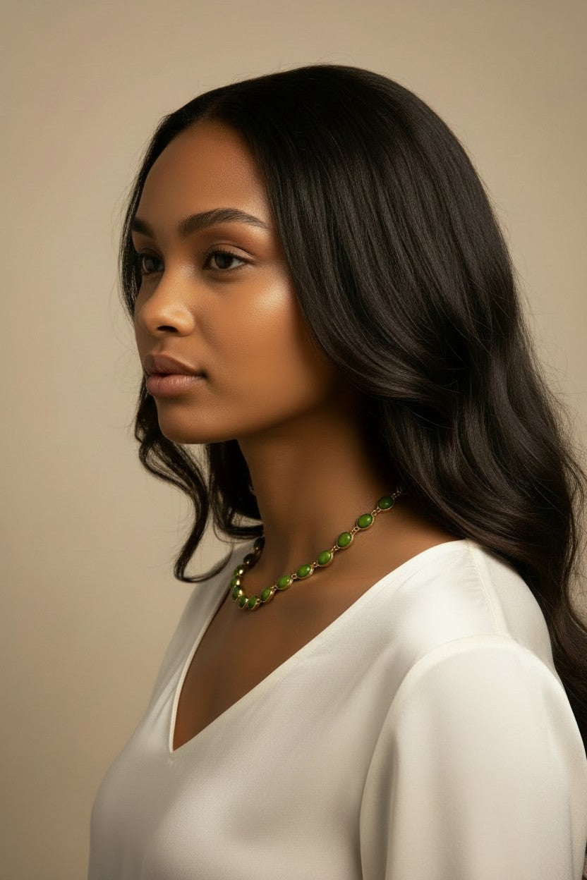 Earthy tones meet refined detail in the Demi Olive & Gold Bead Necklace, a beautifully balanced piece designed to elevate everyday style. This necklace features rich olive green beads paired with delicate gold chain details, creating a warm, sophisticated contrast that feels both natural and polished. The combination of color and metallic accents adds depth and visual interest to any look.