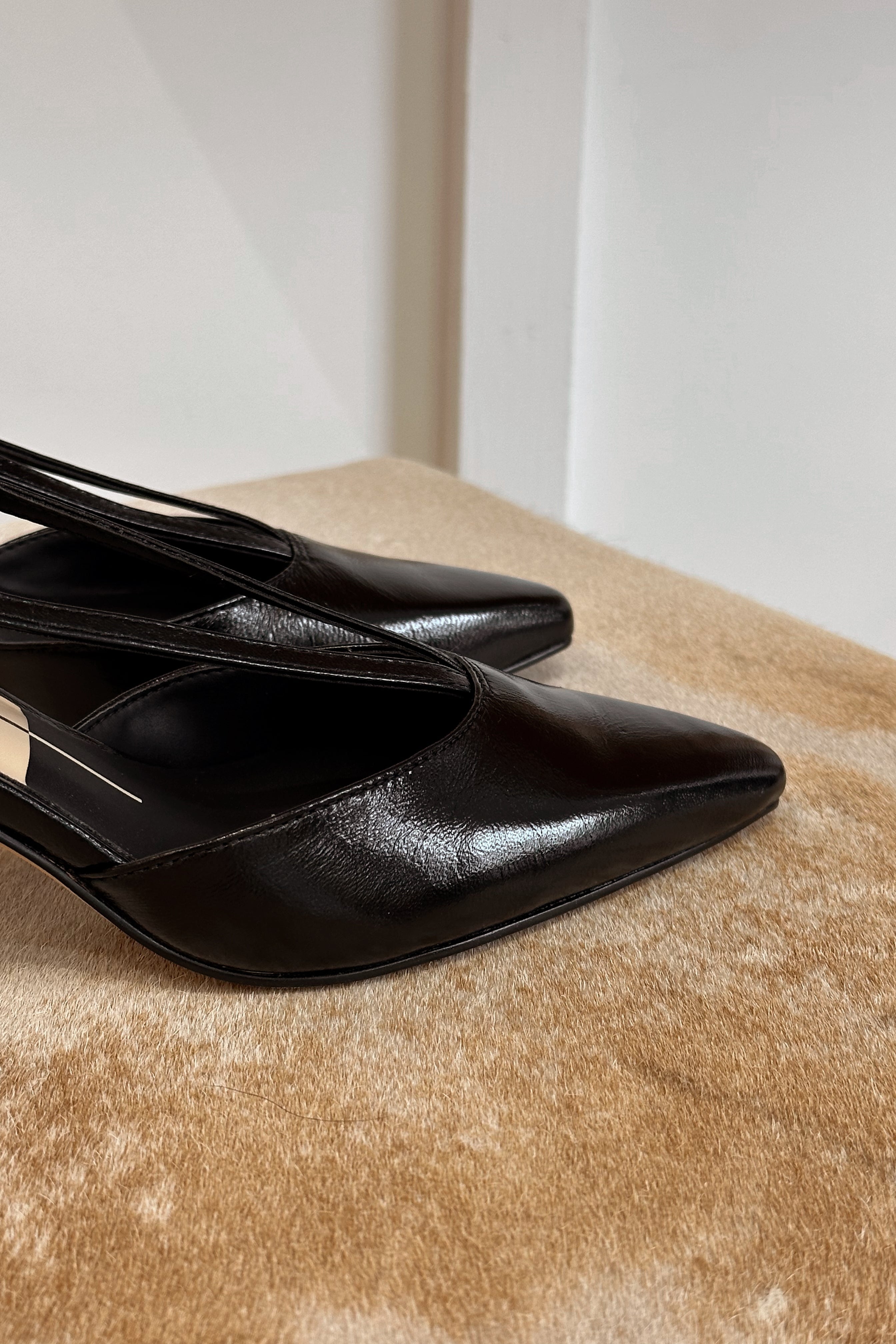 Modern and striking, the Dolce Vita Ginay Heel is a statement piece with timeless appeal. Featuring a sleek black leather upper and sharp pointed toe, this design is elevated by its sculptural architectural heel and chic ankle strap. With a wearable 2.6" heel height, it delivers the perfect balance of elegance and comfort—ideal for polished work looks or elevated evenings out.