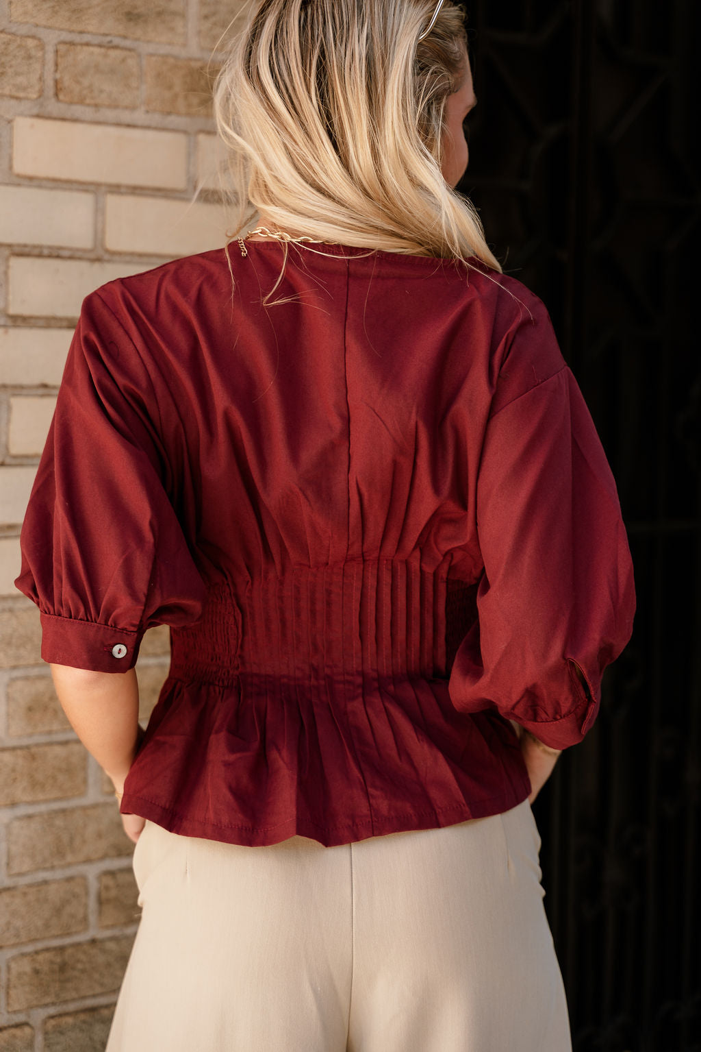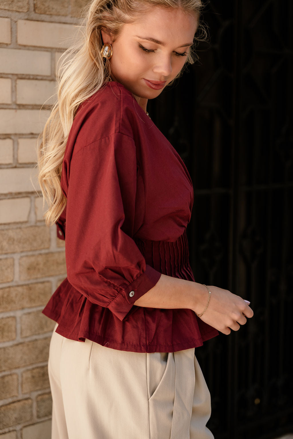 Whether you're heading to brunch, the office, or an evening dinner, the Elianna Burgundy Pleated Zip-Up Top transitions seamlessly from day to night. Sophisticated yet easy to wear, it’s a must have piece that blends girly, comfort, and updated detail with easy style.