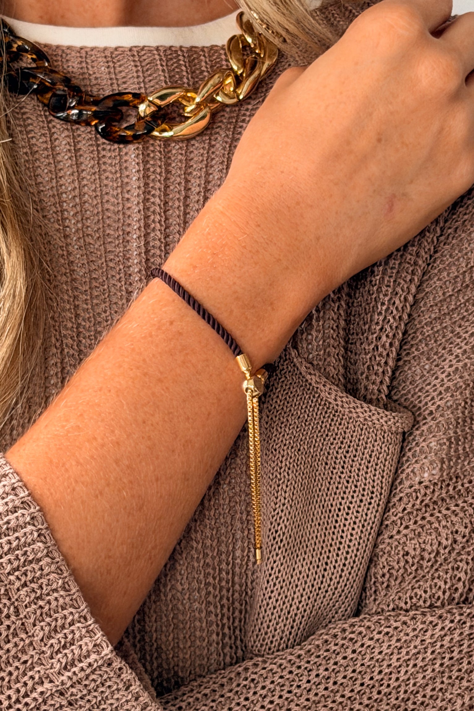 Eliza Dark Brown Rope & Gold Bracelet