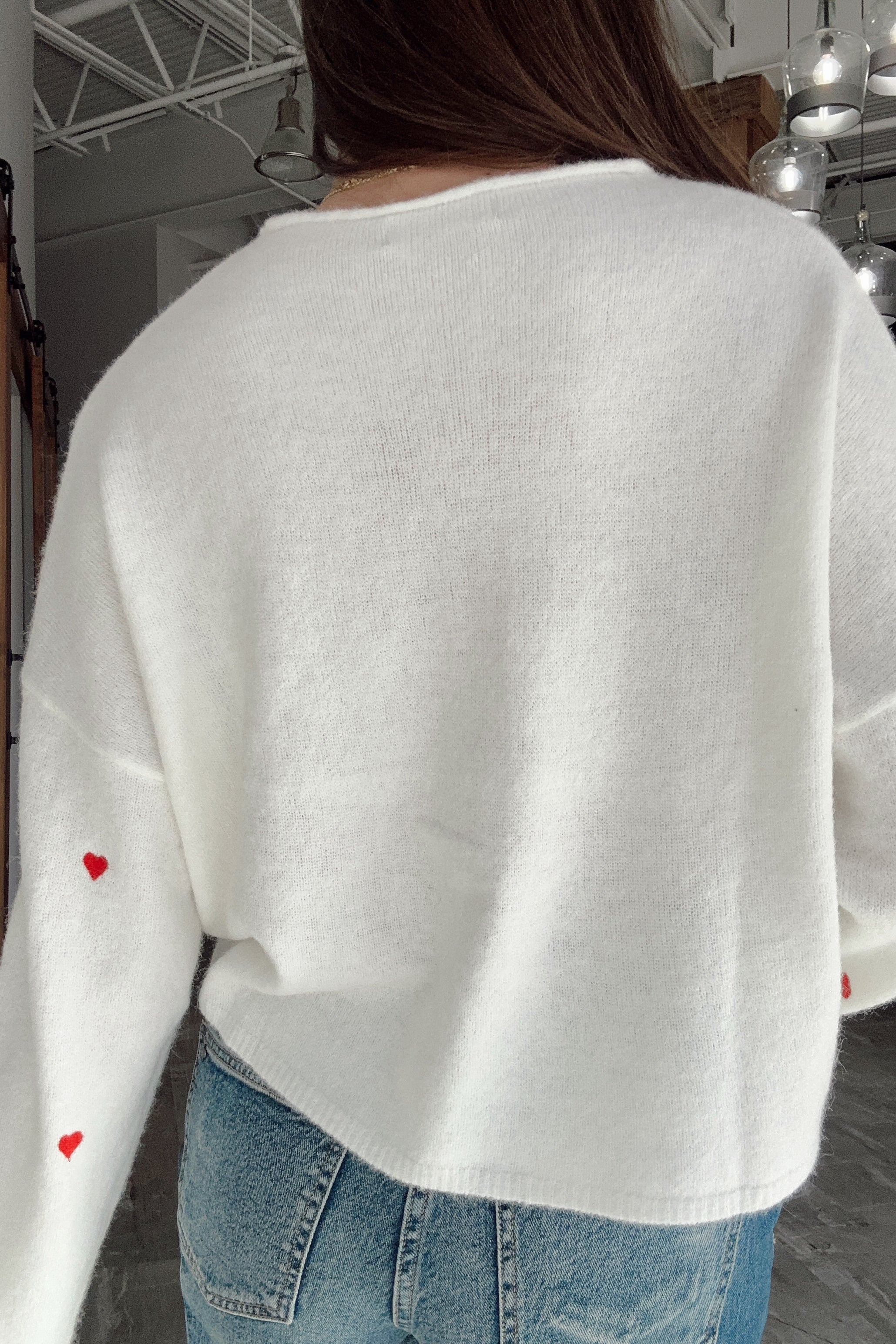 Sweet and cozy with a playful twist, the Emilia White & Red Hearts Cardigan is a charming layering piece designed to stand out. Crafted from soft ivory knit fabric with bold red heart detailing, this cardigan adds a fun yet feminine touch to your wardrobe. The classic round neckline and front button-up design create a timeless silhouette that’s easy to style.