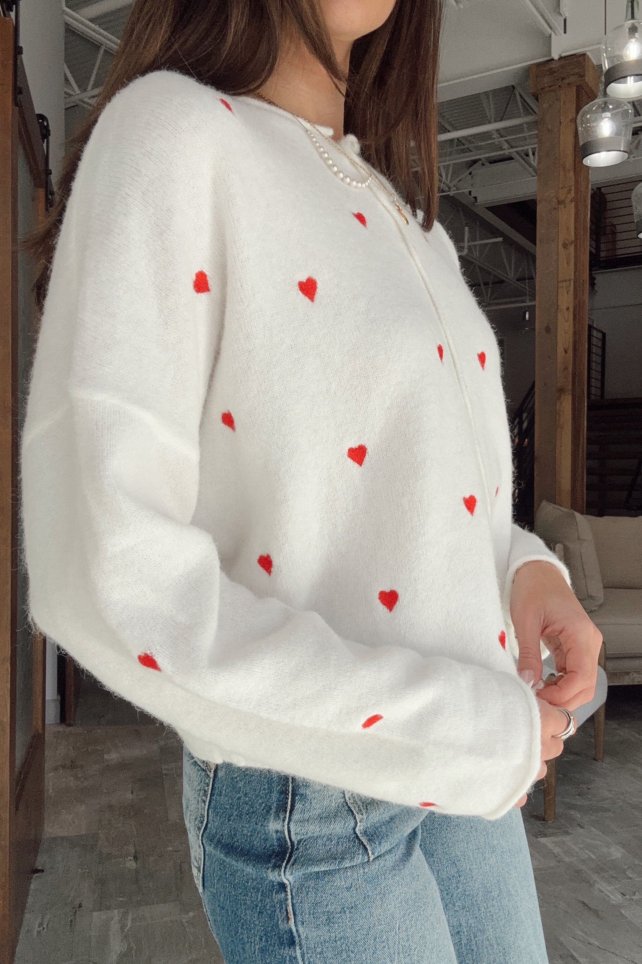 Emilia White & Red Hearts Cardigan