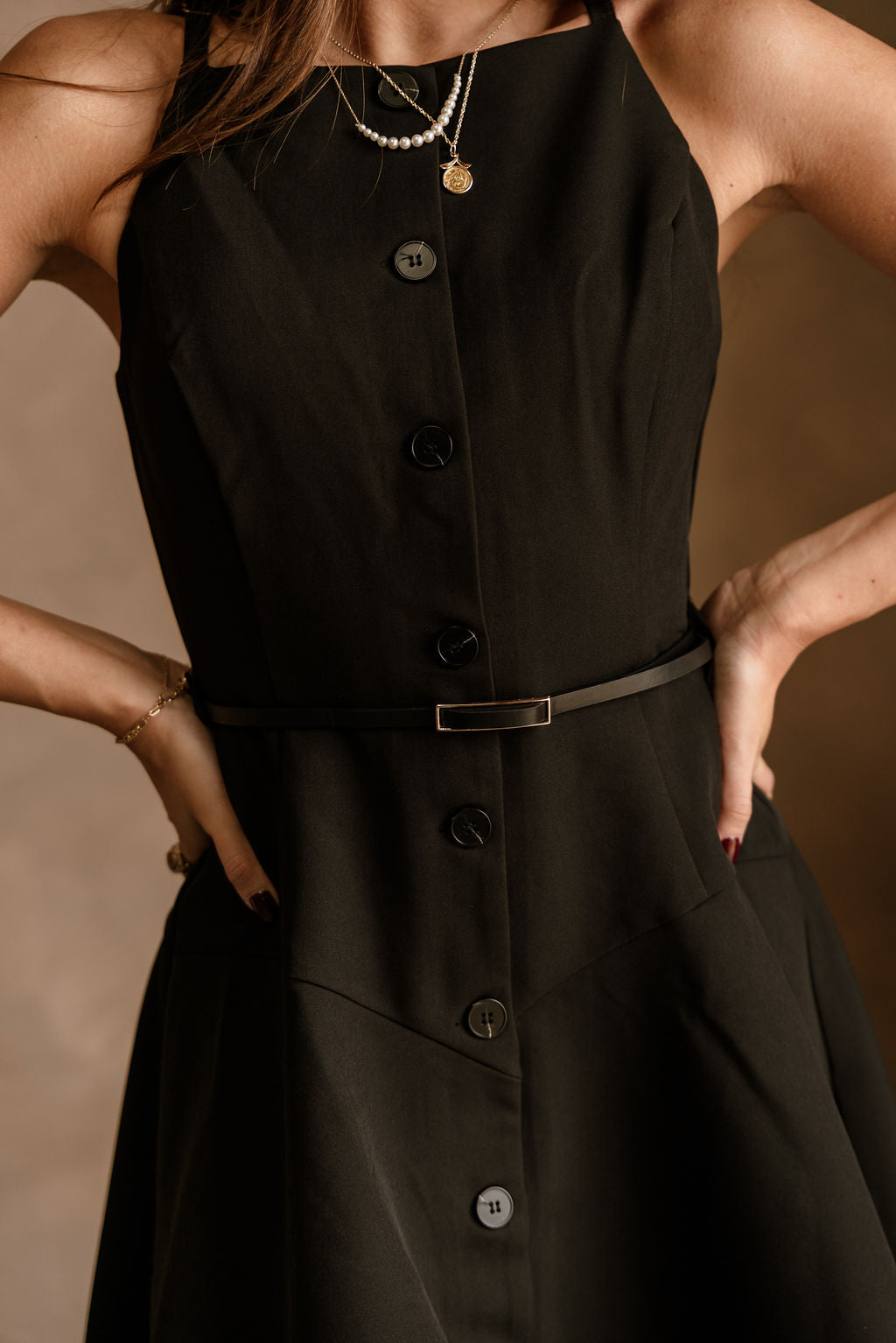 Chic, effortless, and endlessly flattering—the Emily Black Belt Flare Mini Dress is your new go-to for day-to-night dressing. Crafted from a lightweight black fabric, this dress features a flirty flare hem and mini length for a playful silhouette. The square high neckline and sleeveless cut add a modern edge, while adjustable straps ensure the perfect fit.