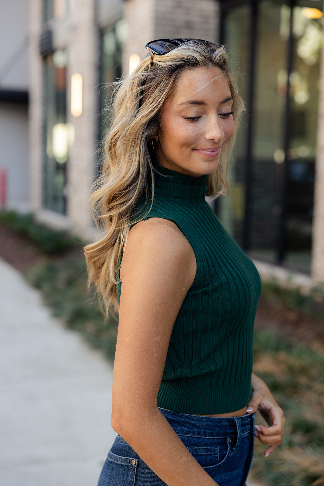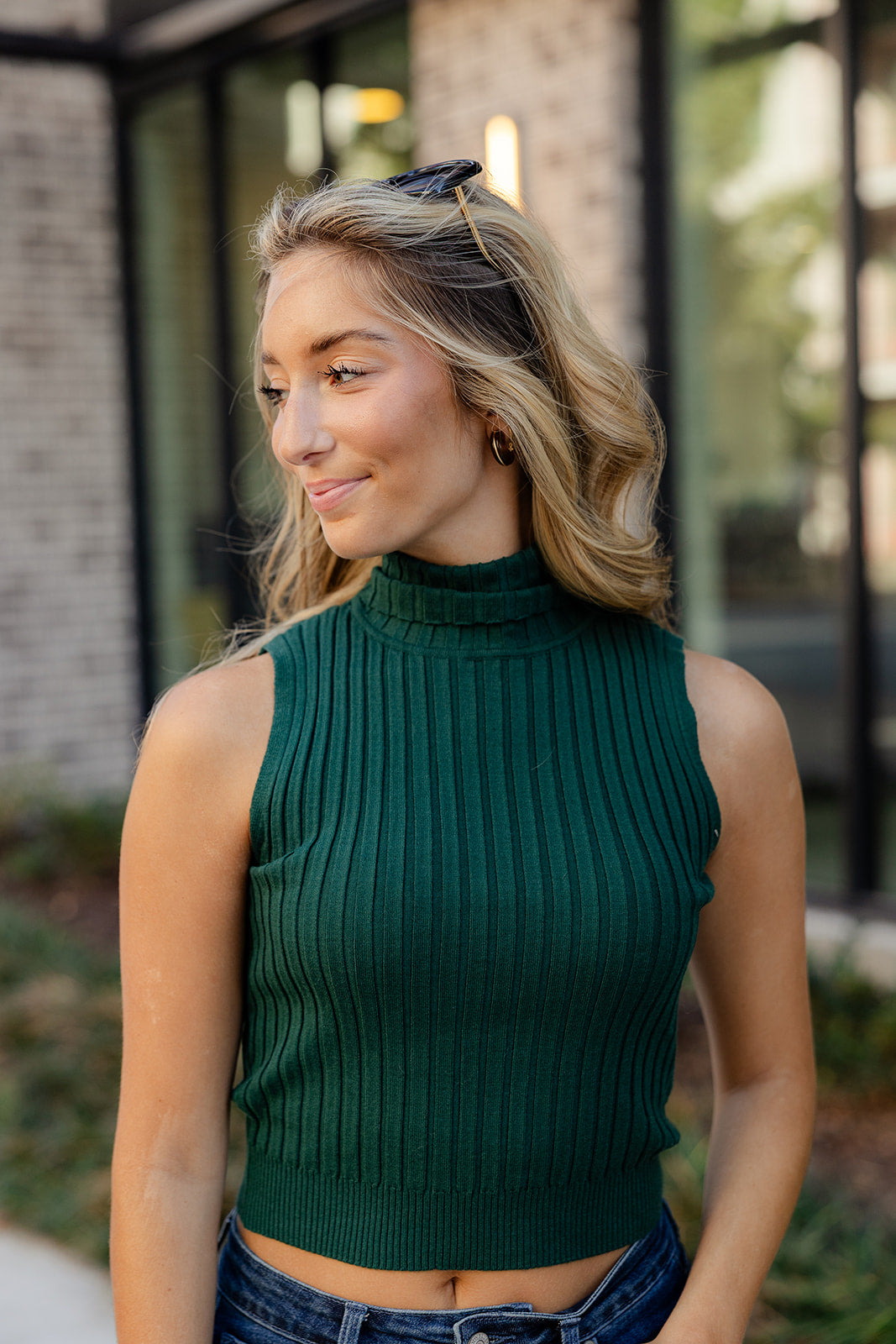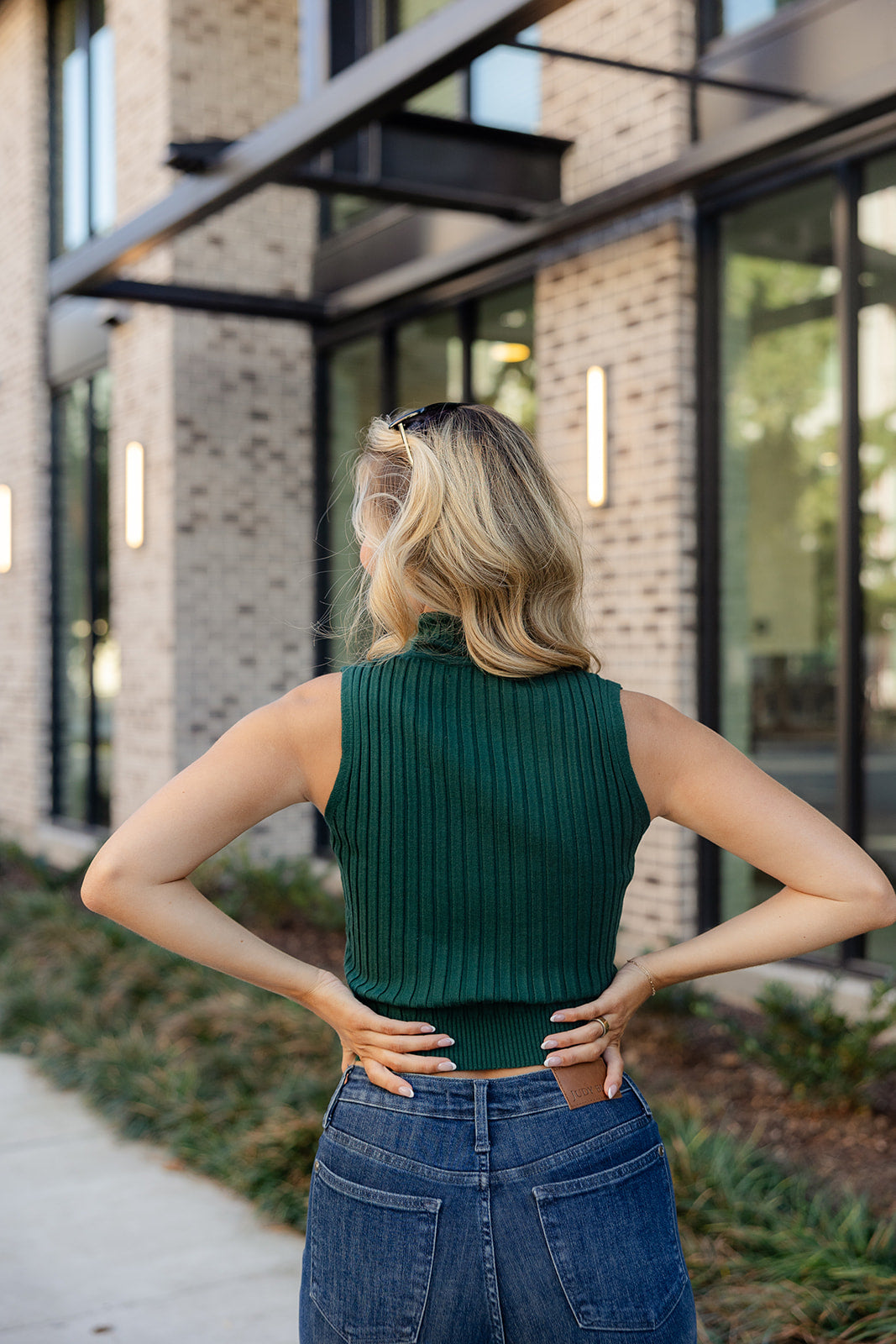 Sleek, simple, and endlessly versatile — the Evie Dark Green Ribbed Knit Tank is a must-have staple. Crafted from soft dark green ribbed knit fabric, this sleeveless top features a flattering high neckline for a modern and clean silhouette. Perfect for layering or wearing solo, it effortlessly complements both casual and elevated looks.