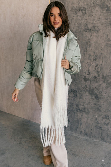 The Fairbanks sage puffer jacket is the perfect blend of cozy warmth and chic design for your seasonal wardrobe.