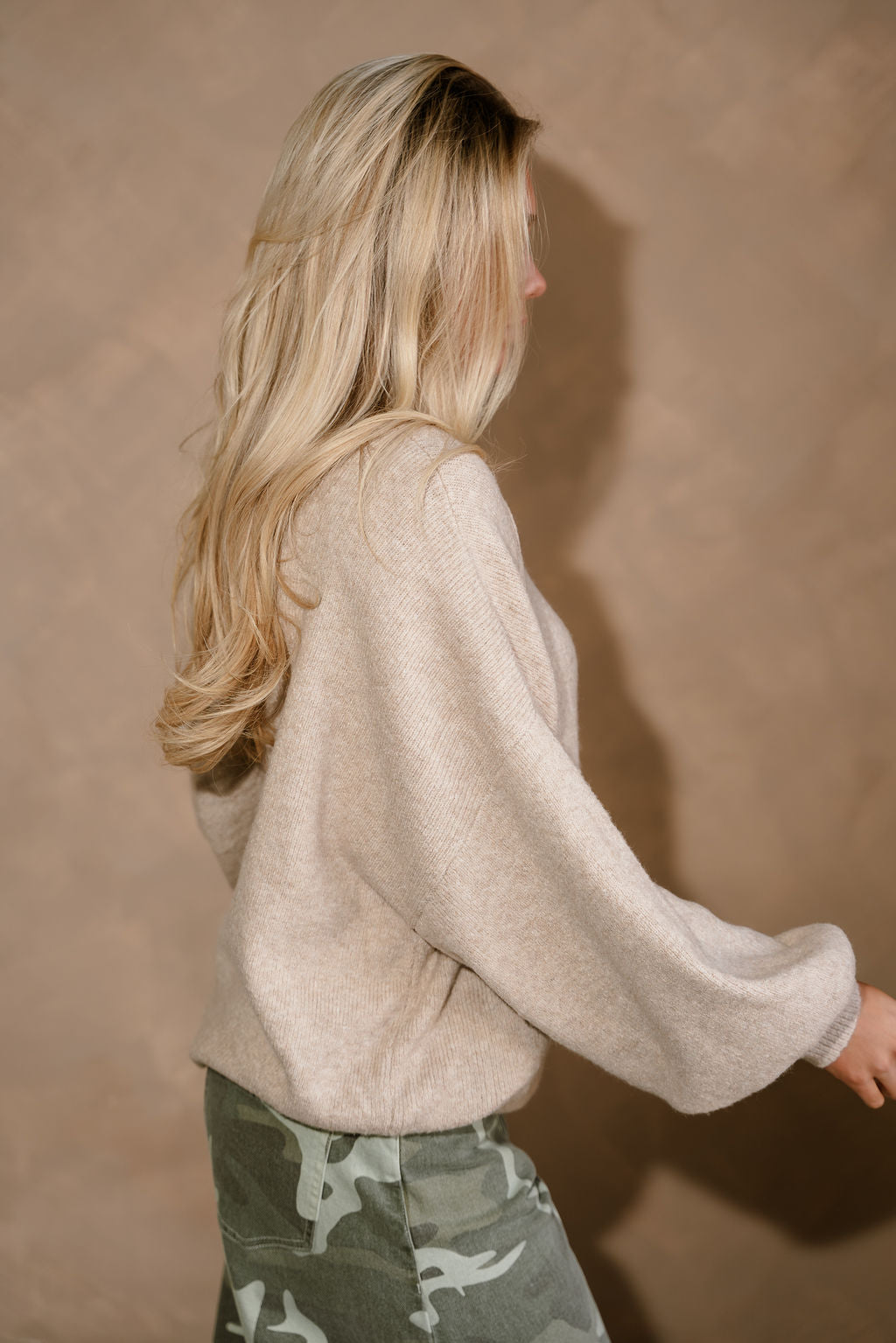 Long balloon sleeves bring volume and visual interest, making this sweater a standout piece for everyday styling. Perfect for pairing with jeans, trousers, or skirts, the Farrah Sweater offers an elevated yet laid-back look that transitions seamlessly from casual days to dressed-up moments.