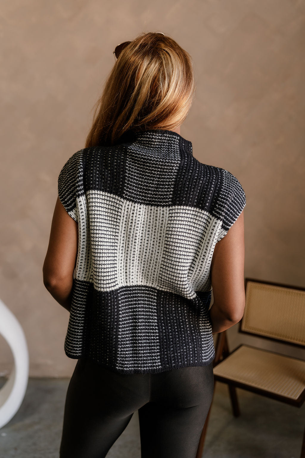 Fiona Black & Cream Colorblock Sleeveless Sweater