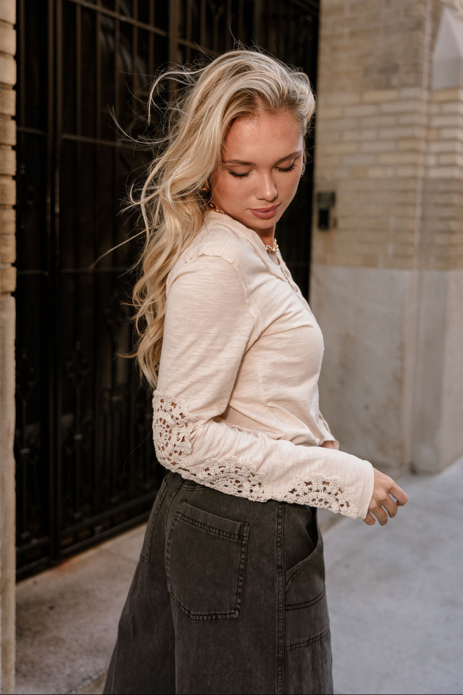 The Freya Taupe Crochet Long Sleeves Top is a timeless piece that blends delicate craftsmanship with everyday comfort. Made from natural cotton fabric, it features intricate crochet knit details that add texture and charm. The round neckline and quarter button-up front offer classic styling, while small side slits provide ease of movement. With long sleeves and a relaxed fit, this top is perfect for layering or wearing on its own for a chic, effortless look.