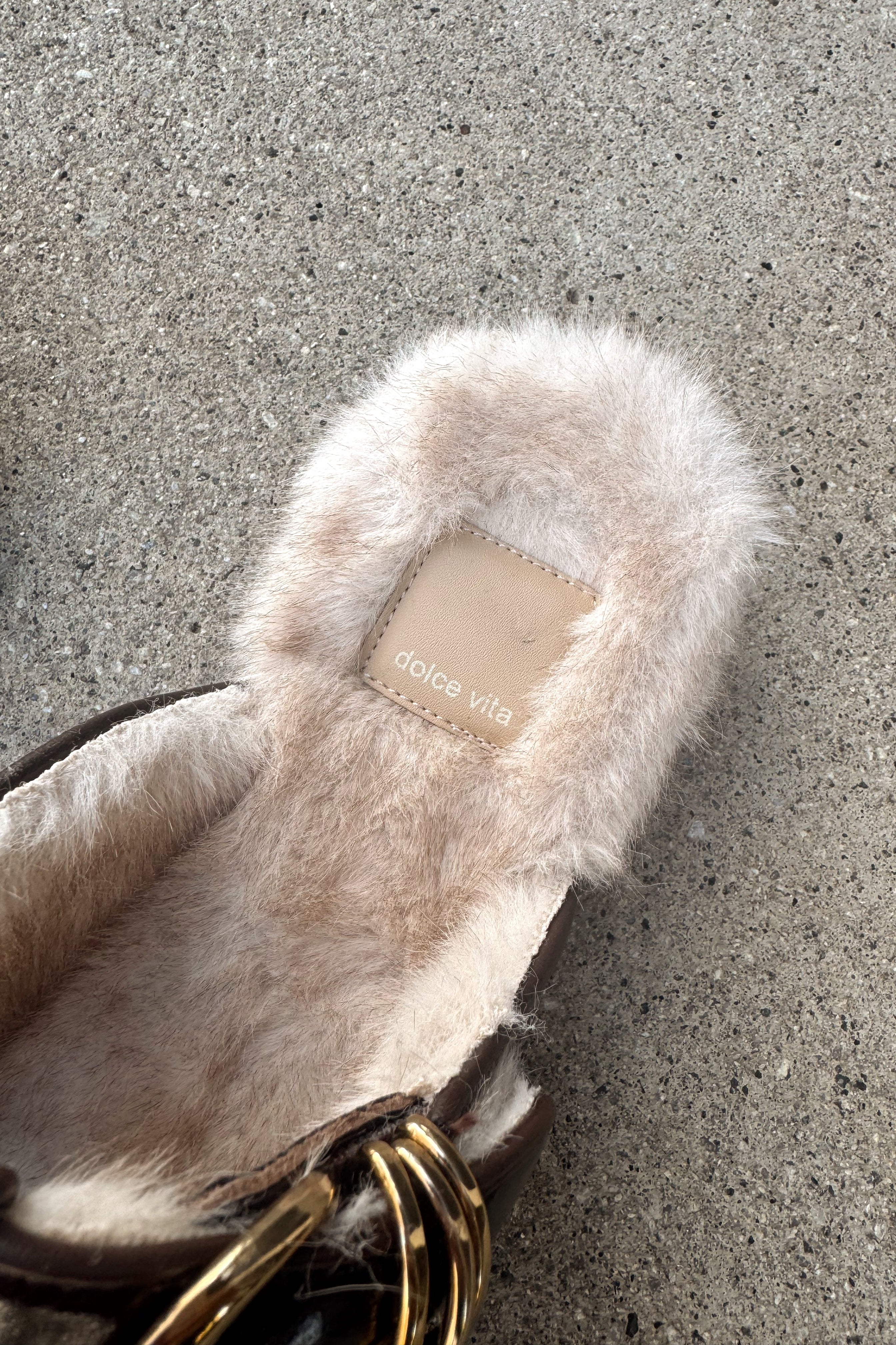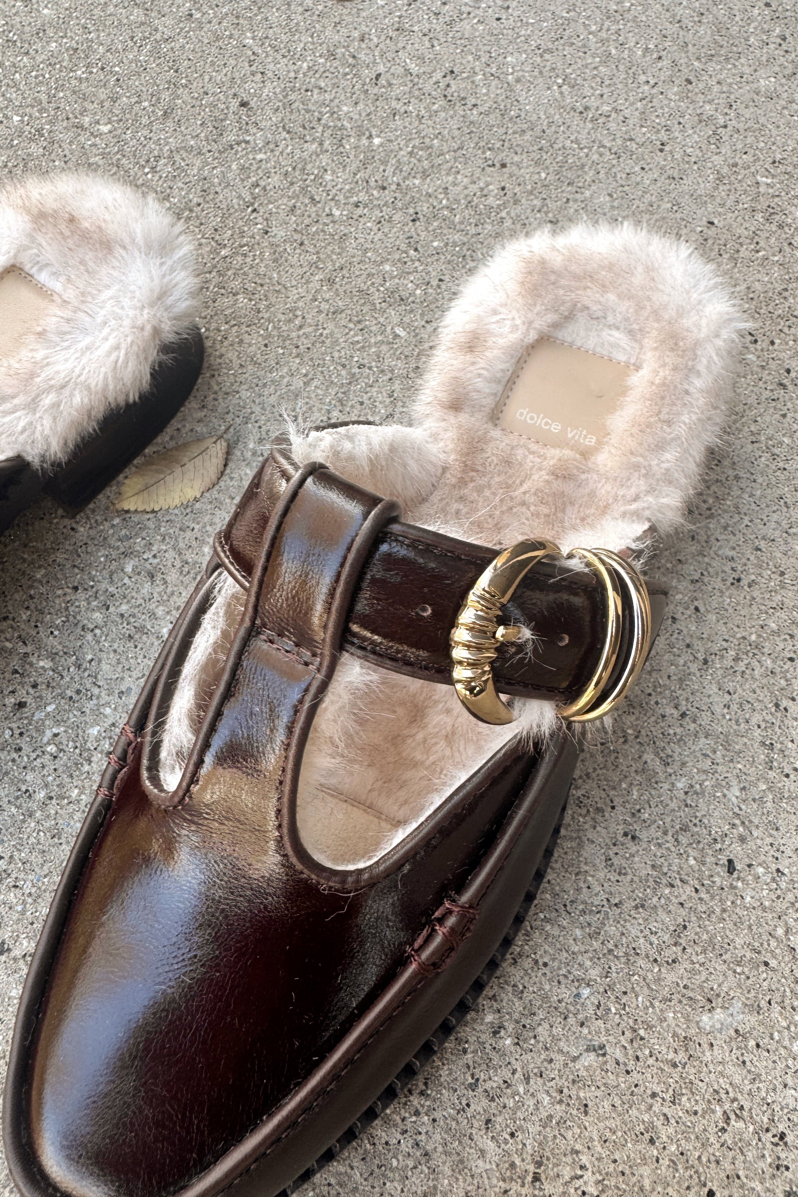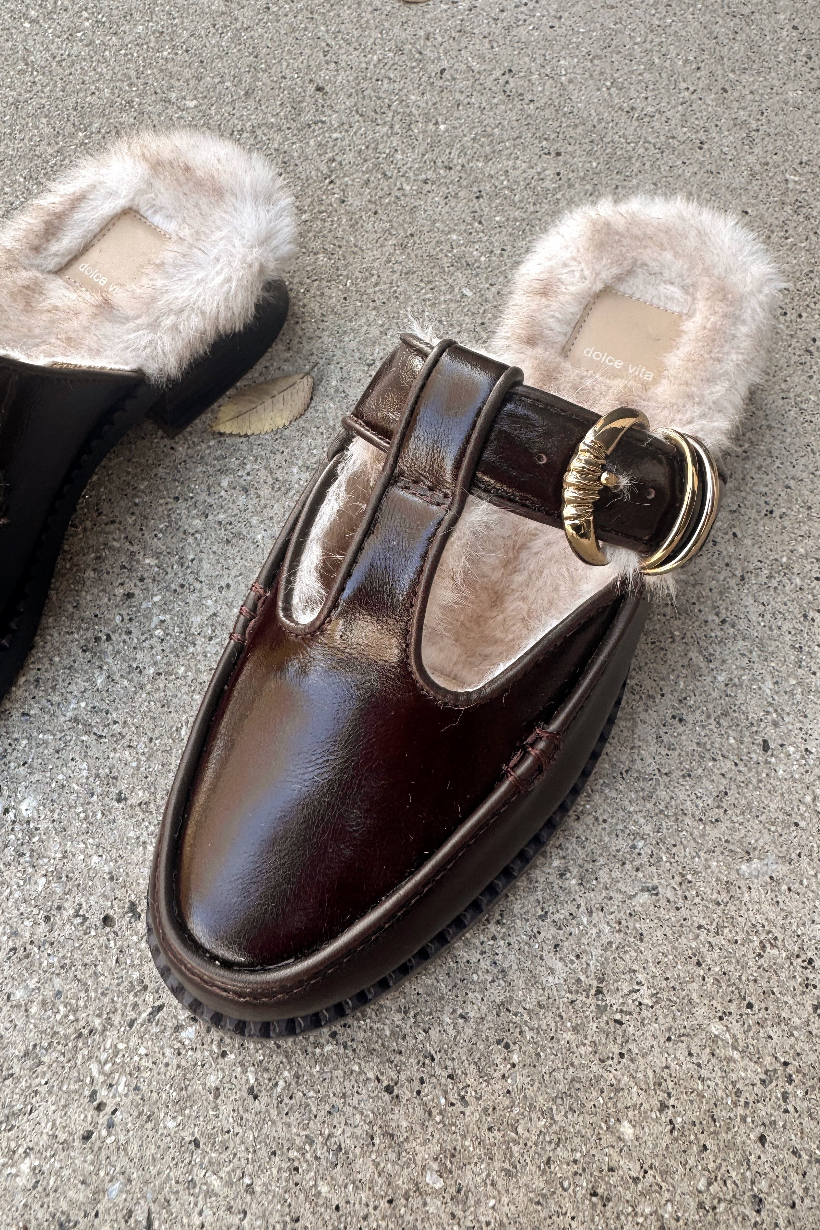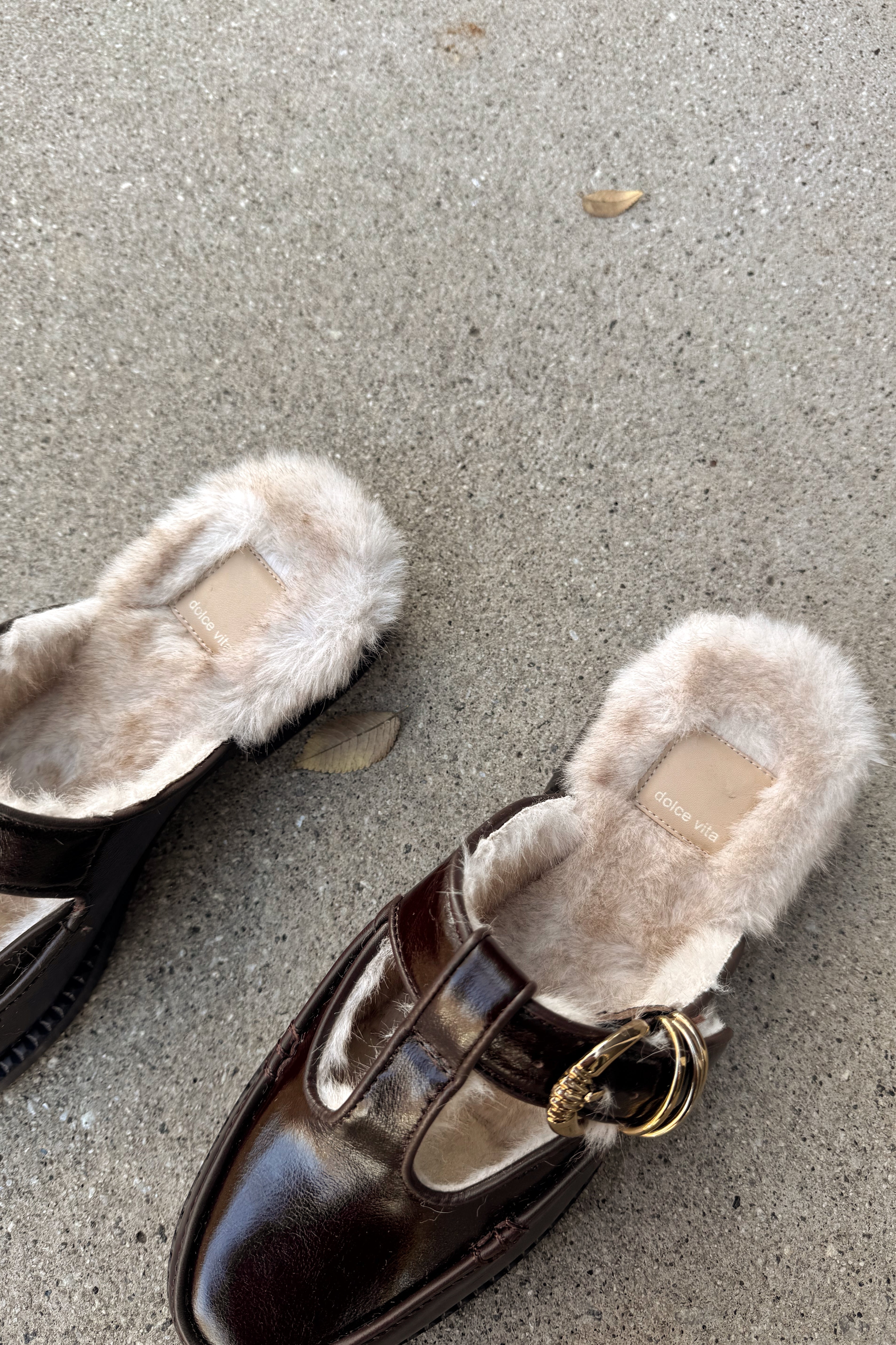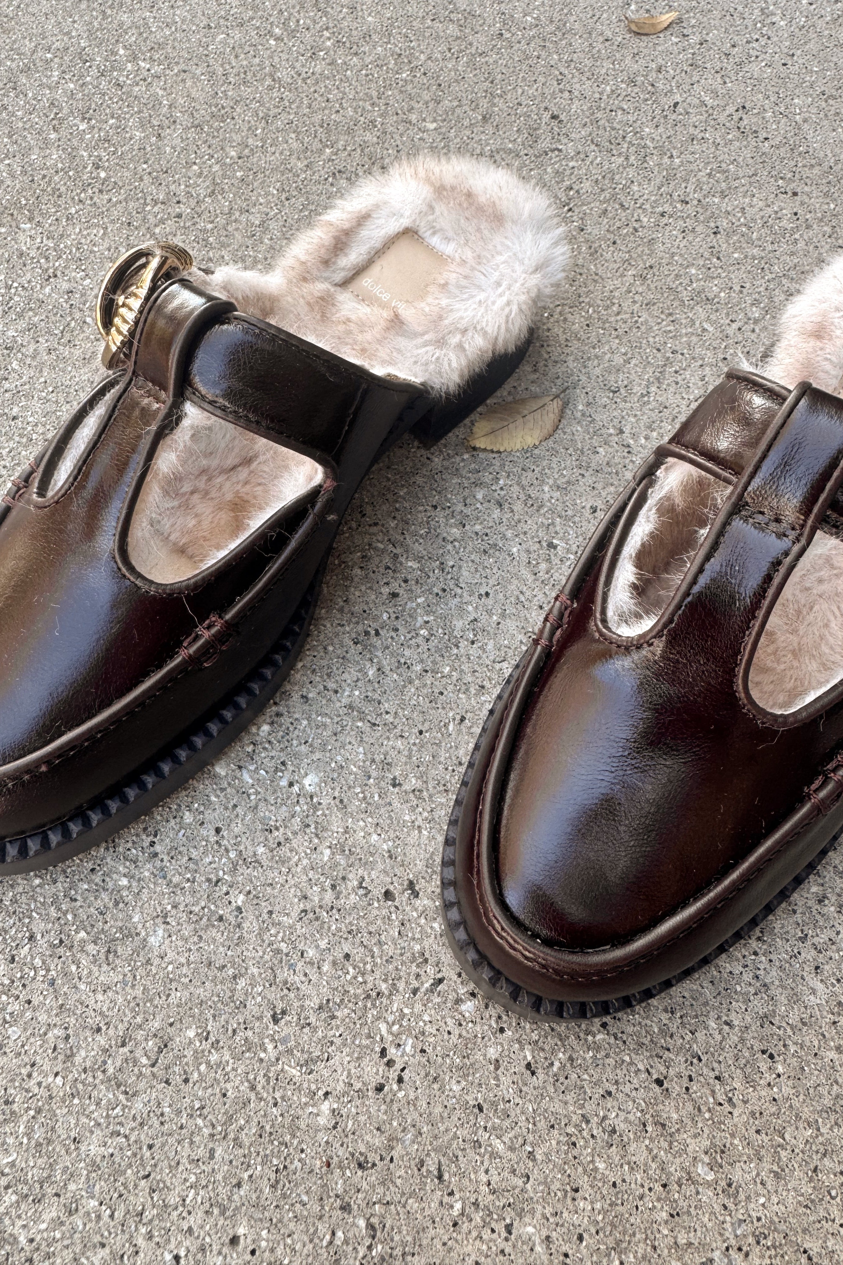 Step into effortless charm with the Harlah Chocolate Leather Plush Flats — a vintage-inspired Mary Jane loafer designed for style and all-day comfort. Crafted with a rich dark brown leather upper, this pair features a classic round toe and a timeless T-strap silhouette accented with a polished gold buckle. Inside, a soft shearling lining adds a luxurious, plush feel, keeping every step cozy. Finished with a subtle 0.8-inch heel for a touch of lift, these flats blend heritage elegance with modern comfort — the perfect everyday pair with a refined twist.