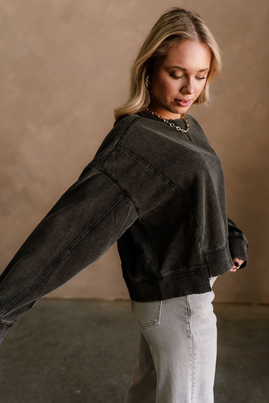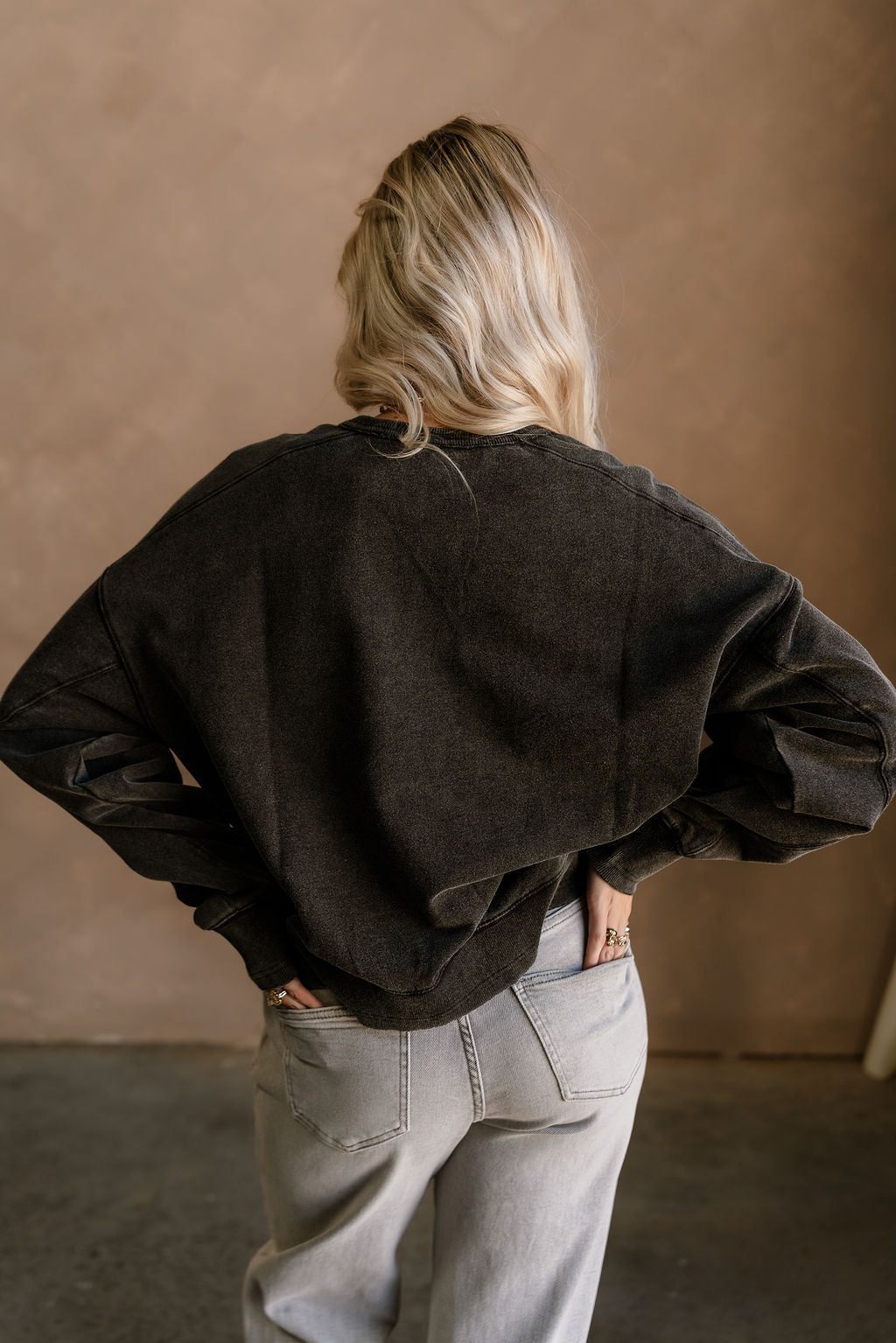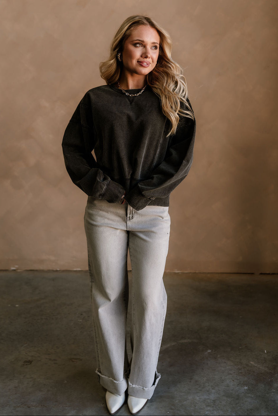 Casual, comfortable, and effortlessly cool, the Harper Washed Black Long Sleeve Sweatshirt is a versatile essential for everyday wear. Crafted from soft washed black cotton fabric, it offers a relaxed, lived-in feel with cozy comfort.