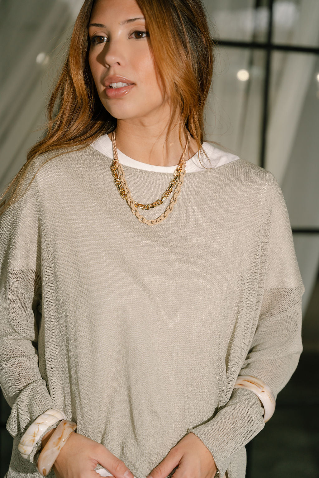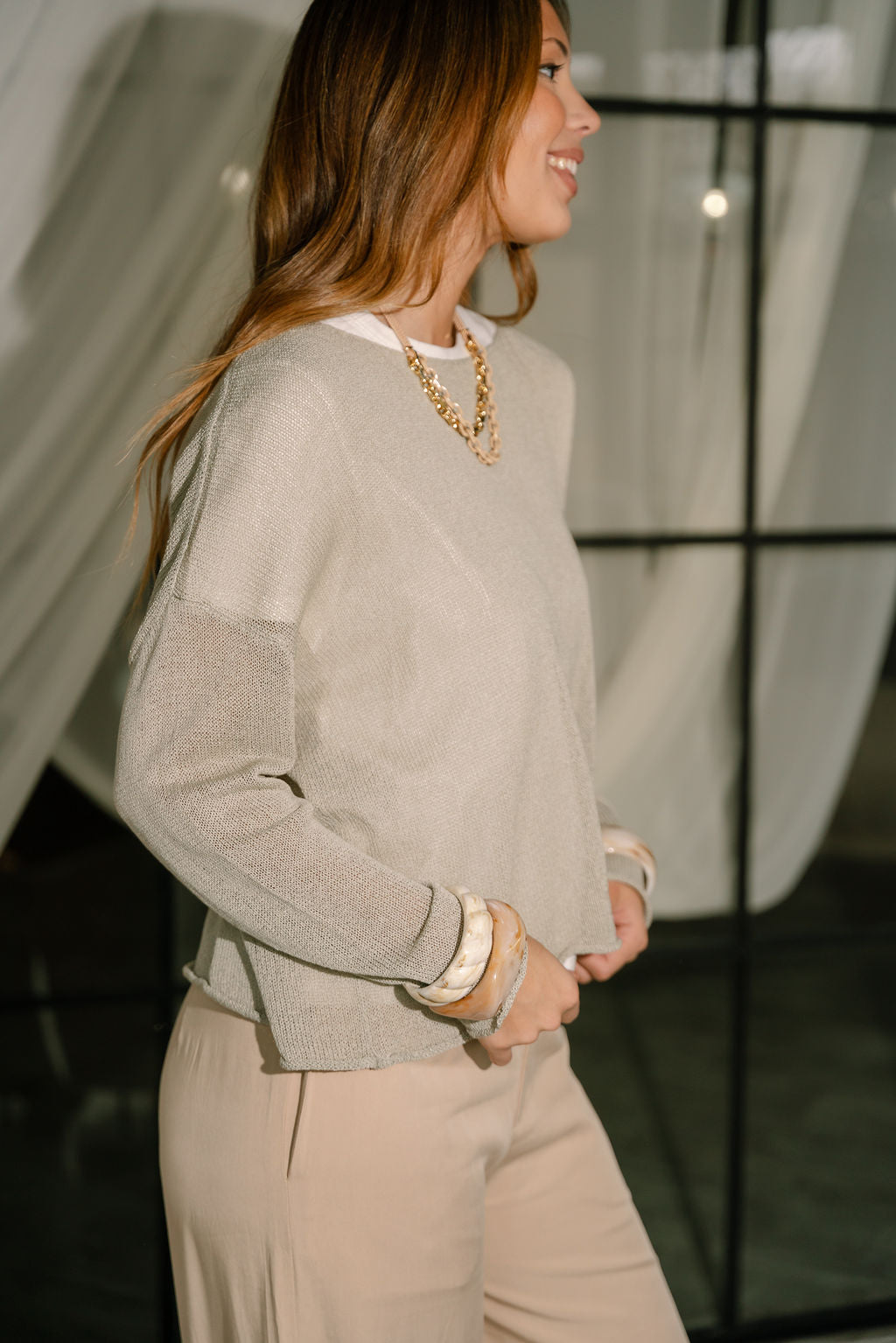 Designed with dropped shoulders and long sleeves, the Hester Sweater offers a laid-back silhouette that feels cozy without being bulky. Pair it with denim for a casual day out, or layer it over a tank with tailored pants for a comfortable yet put-together look. Its versatile sage hue makes it an easy neutral you’ll reach for again and again.