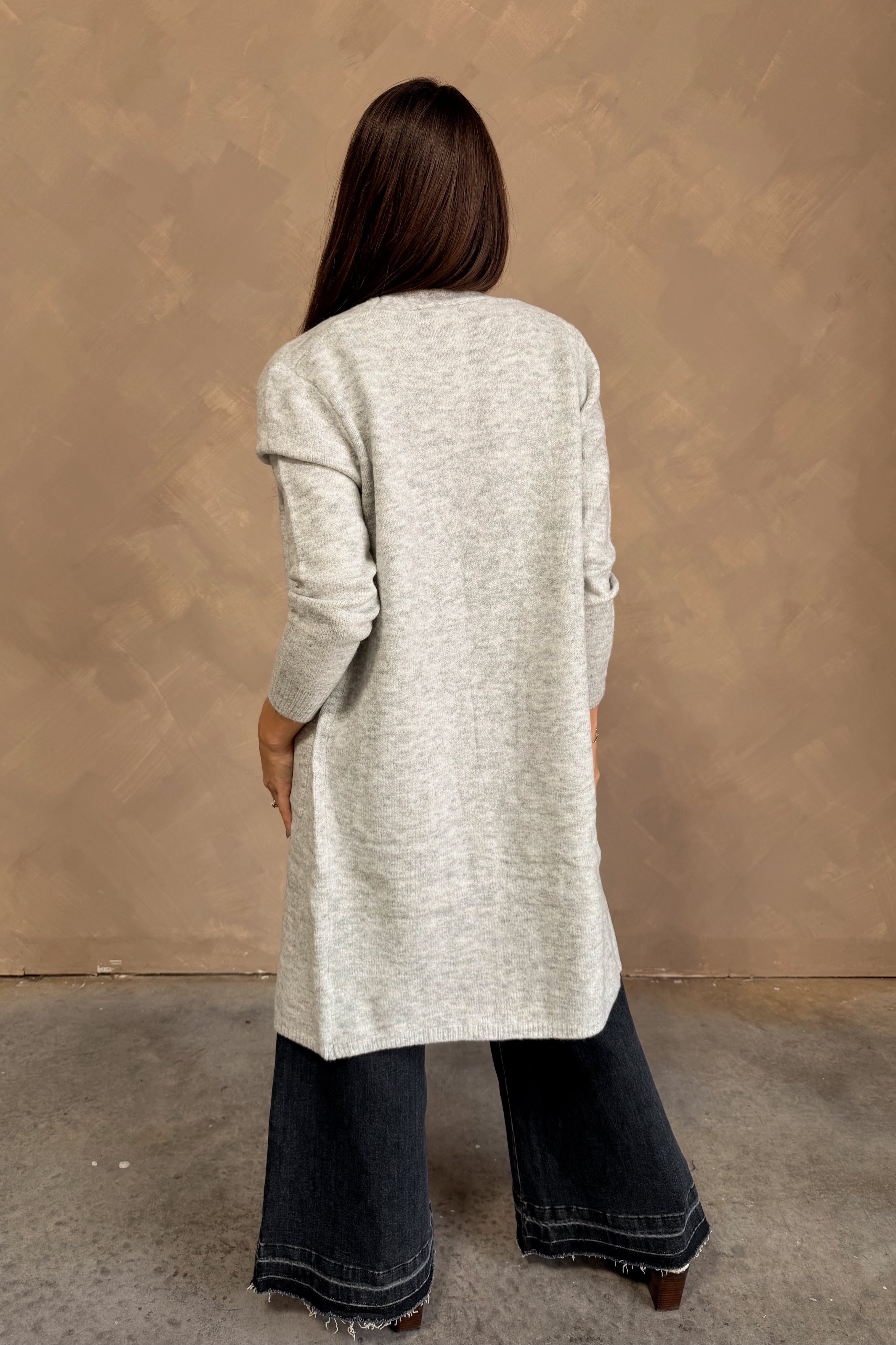 The Isadora Heather Grey Longline Cardigan is a cozy, versatile layering piece perfect for any casual or polished look. Crafted from soft heather grey knit fabric, this cardigan offers a relaxed fit with a flattering midi length that drapes beautifully over jeans, leggings, or dresses. Its front opening creates an effortless silhouette, ideal for throwing on over any outfit for instant style and comfort.