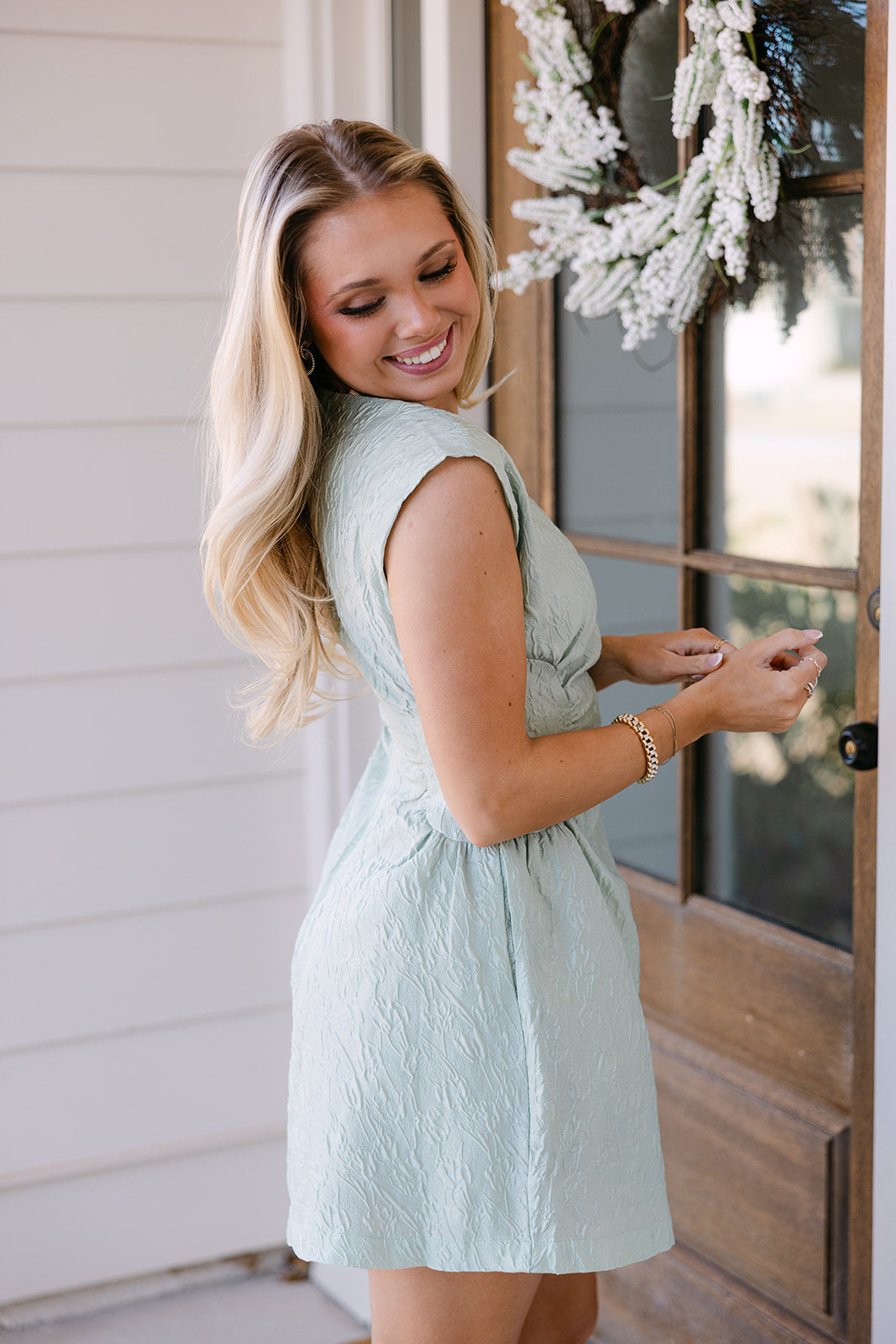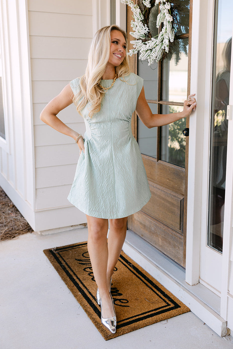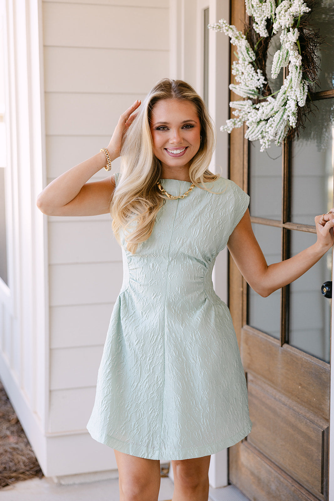 The Jane Sage dress pairs beautifully with heels or flats for an effortlessly polished outfit. With its blend of elegant fabric, flattering details, and modern mini length, the Jane Sage Jacquard Floral Mini Dress brings refined charm and wearable sophistication to any occasion.
