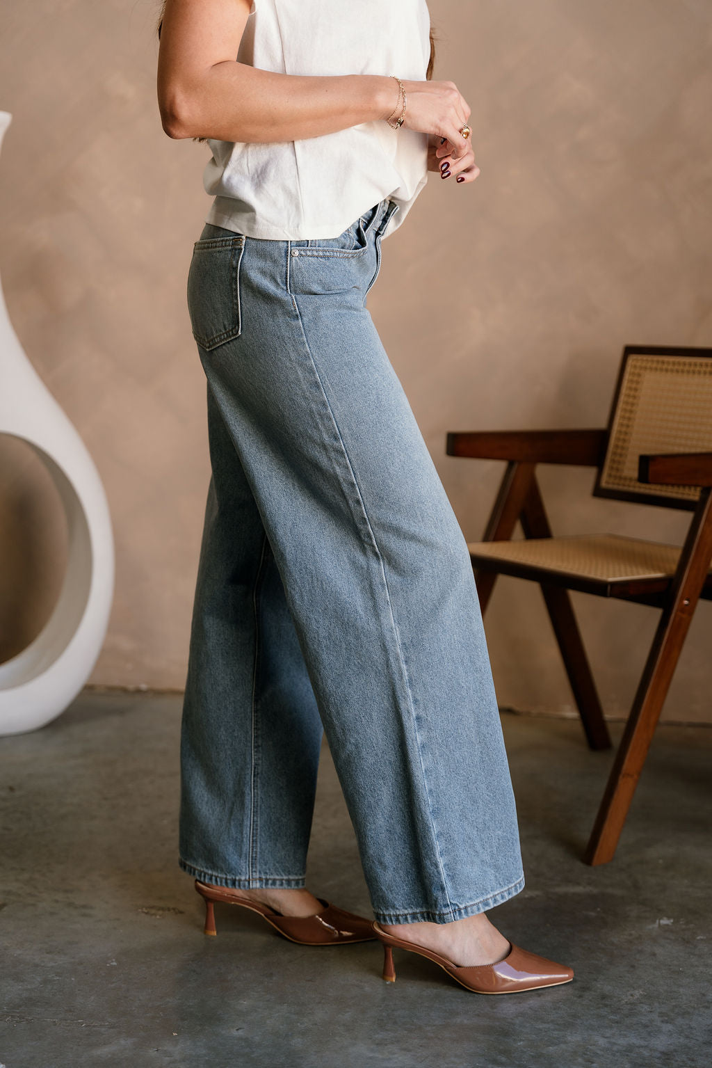 Effortless cool meets modern comfort in the Just Black Denim Blair Baggy Wide Leg Jeans. Crafted from medium-wash denim, these jeans feature a relaxed baggy wide-leg silhouette for a laid-back, on-trend look. Designed with a front zipper and button closure, functional front and back pockets, and belt loops for styling versatility, the Blair jeans combine classic denim details with contemporary flair. Perfect for pairing with fitted tops or oversized sweaters, they offer a stylish, everyday-ready foundation for your wardrobe.