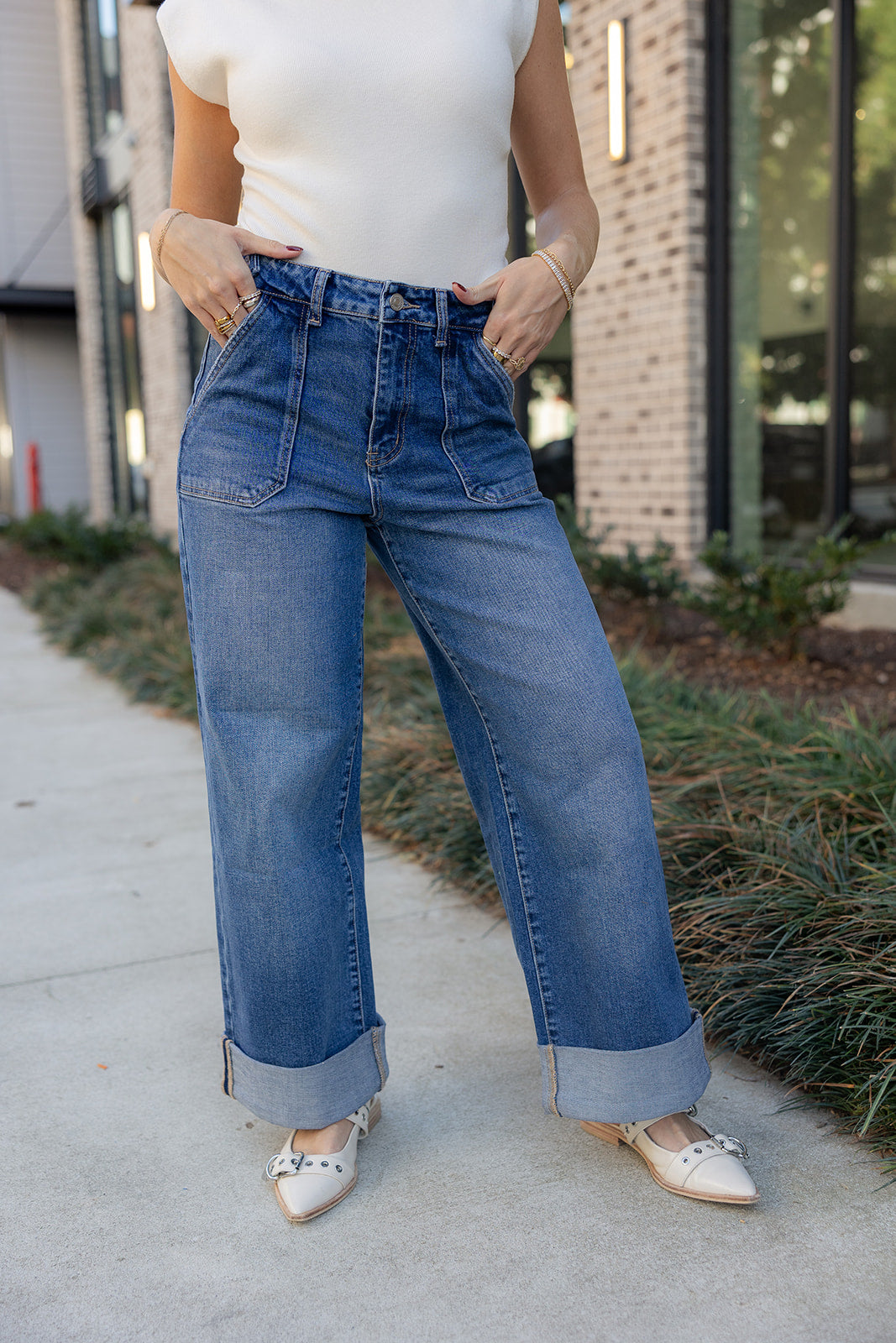 Channel effortless 90s style with the Kancan Gia Dark Denim 90s Wide Leg Jeans. Crafted from dark denim fabric, these jeans feature an ultra high-rise waist and a wide-leg silhouette for a flattering, retro-inspired fit. Designed with front and back pockets, belt loops, and a classic front zipper with button closure, they’re perfect for pairing with cropped tops, sweaters, or blazers to complete a chic, vintage-inspired look.