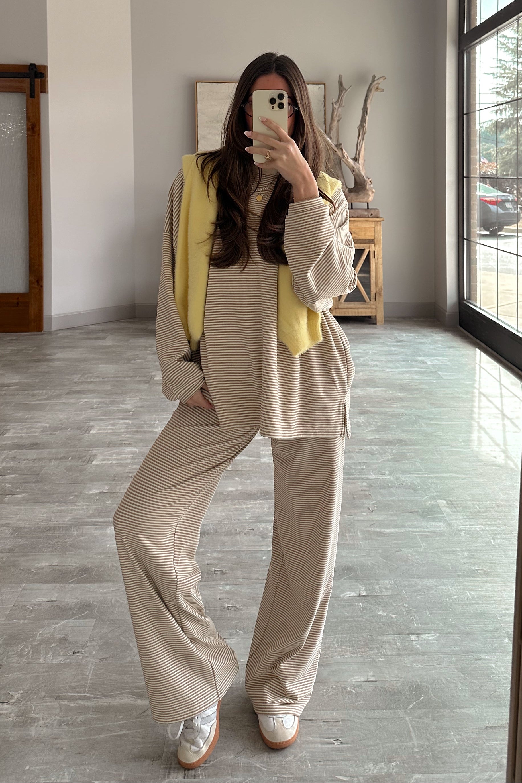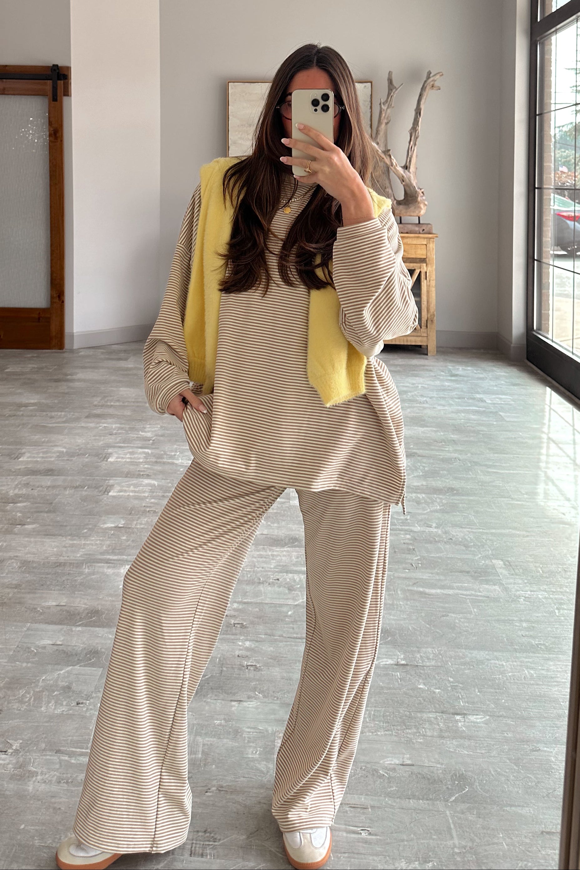Perfect for lounging, traveling, or casual days out, the Kellyn pants blend comfort and style in one easy piece. Pair them with the matching Kellyn Beige Stripe Long Sleeve Top for a coordinated lounge set or style them with a simple tee or sweater for relaxed everyday wear. Whether you’re staying in or stepping out, these pants keep you feeling comfortable and put together.