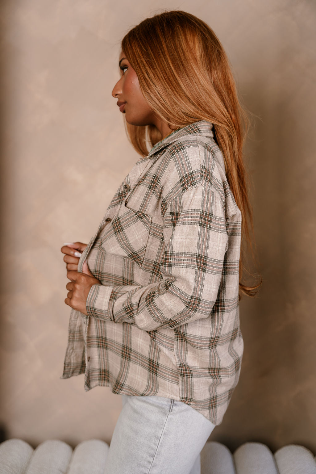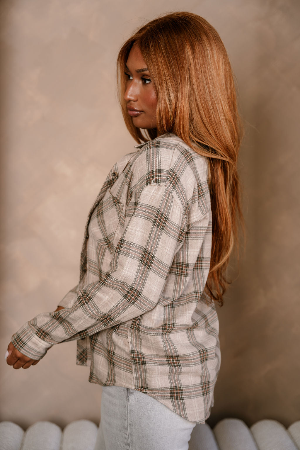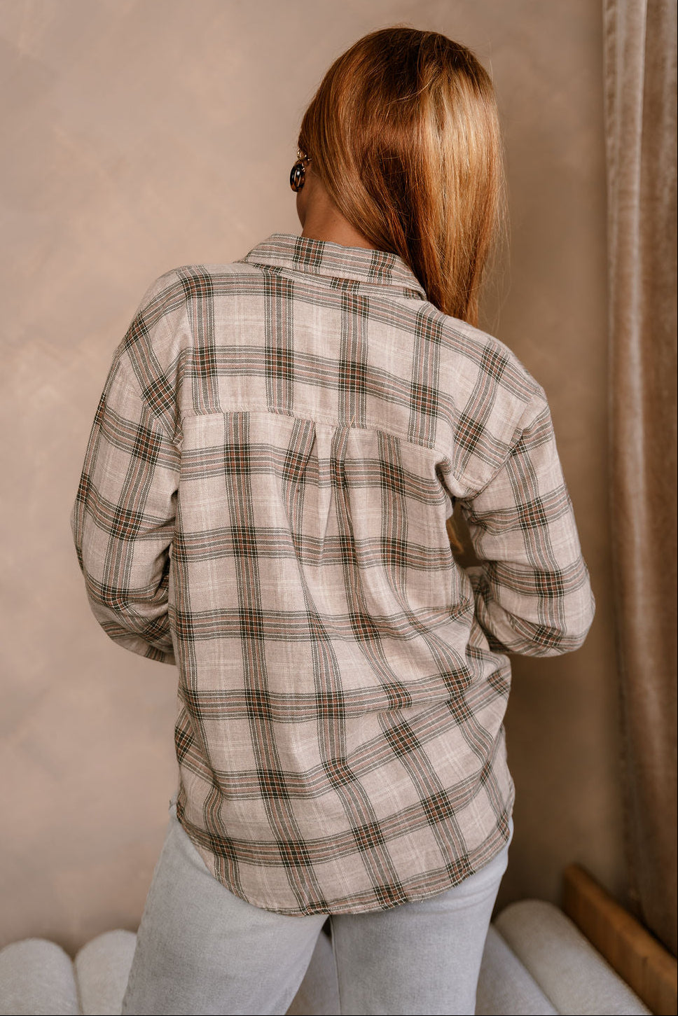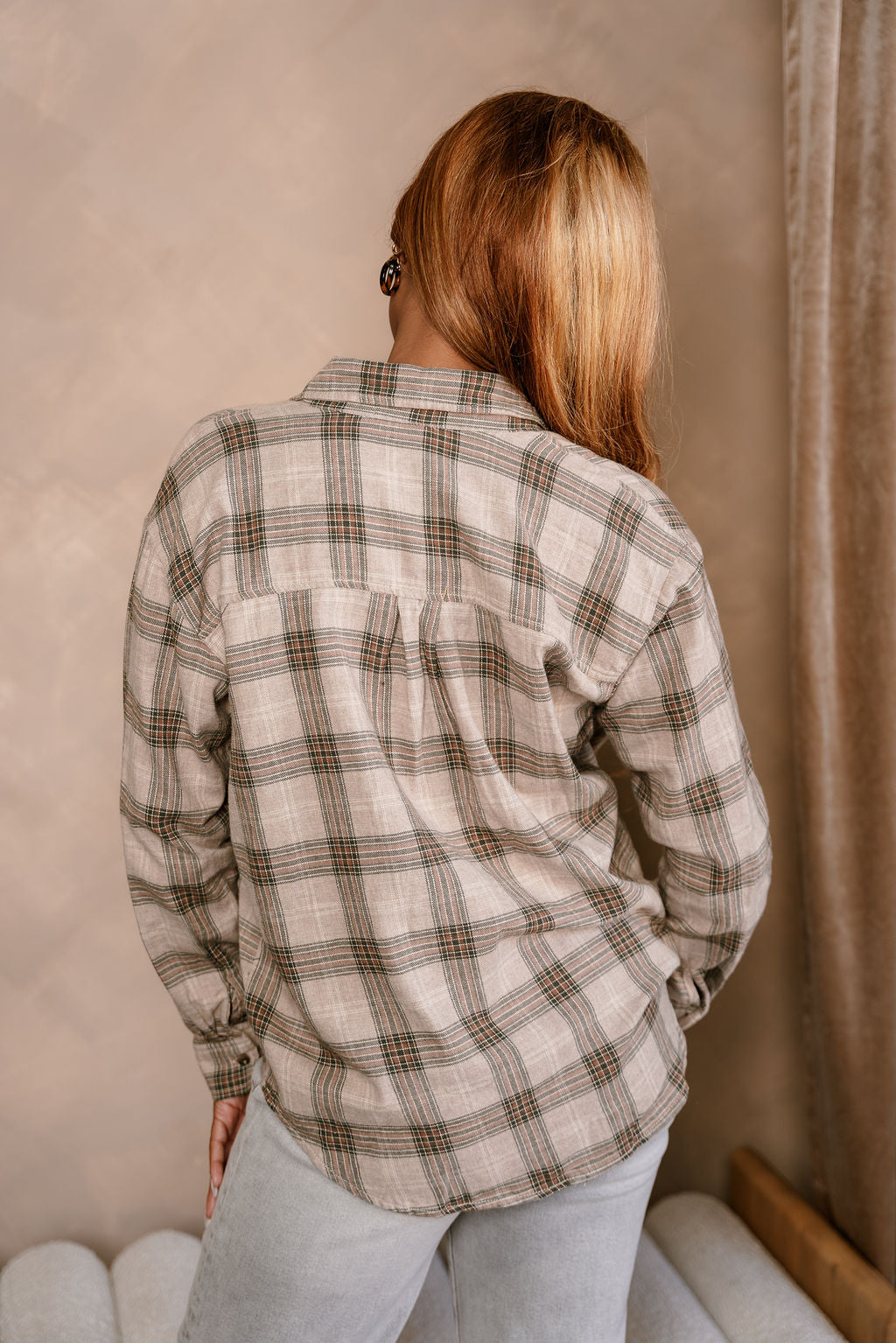 Kendall Taupe Multi Plaid Button-Up Top