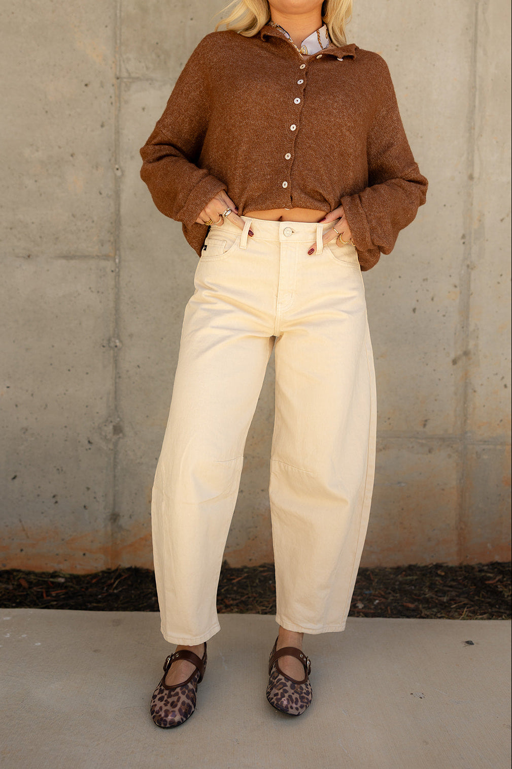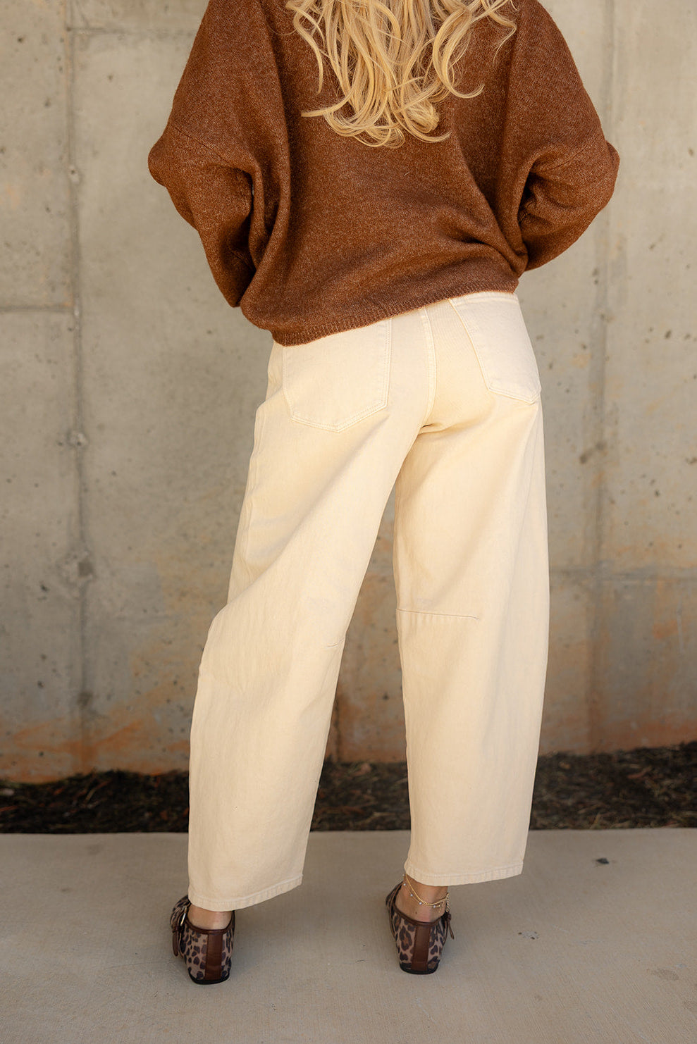 Khloe Ivory Barrel Leg Mid-Rise Jeans