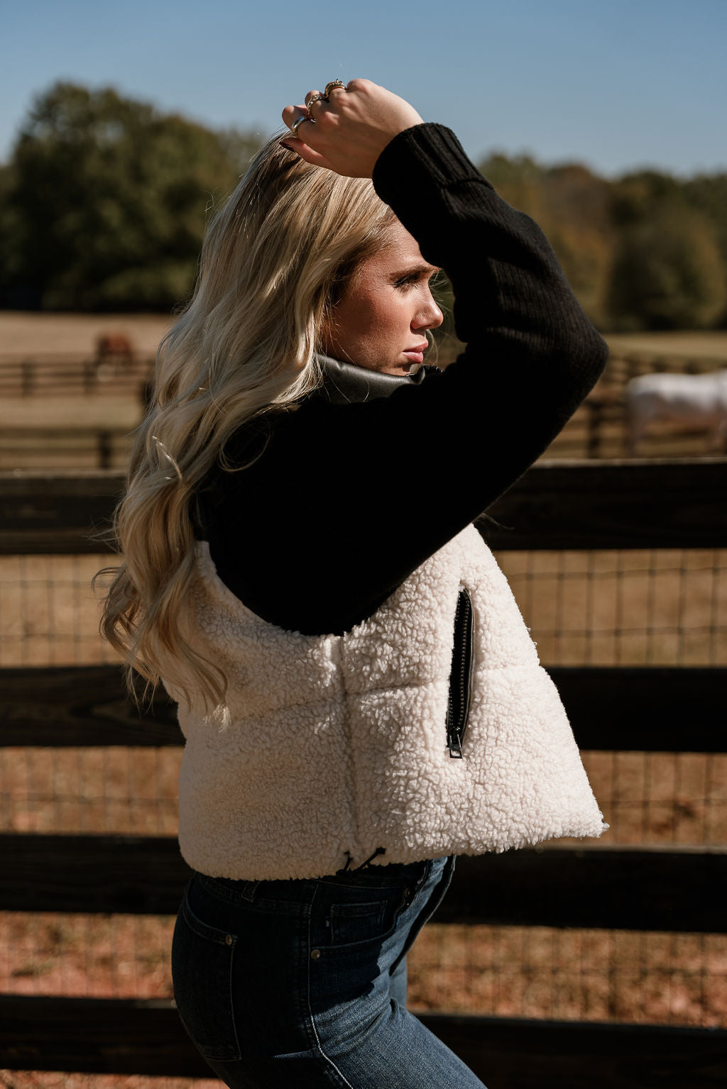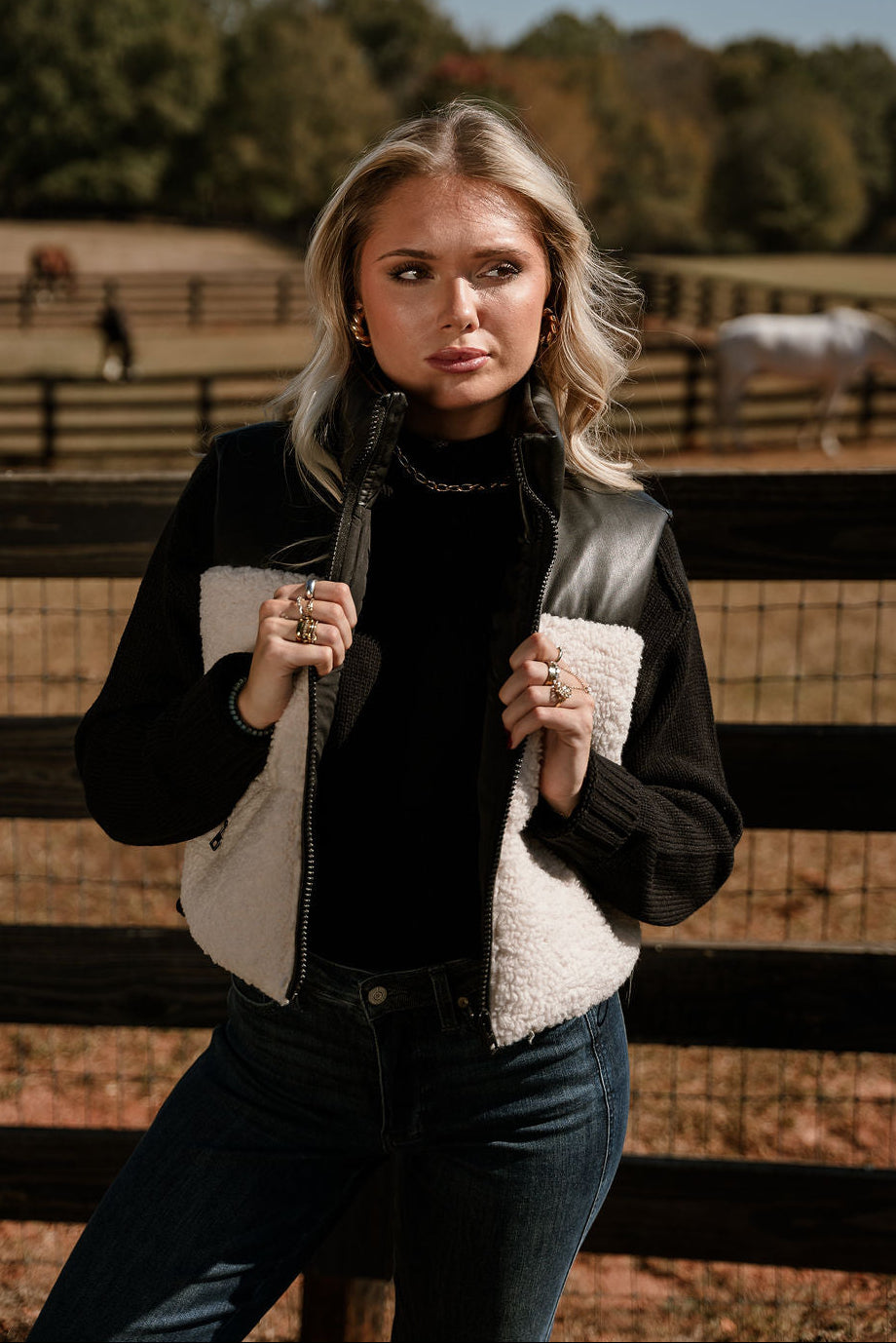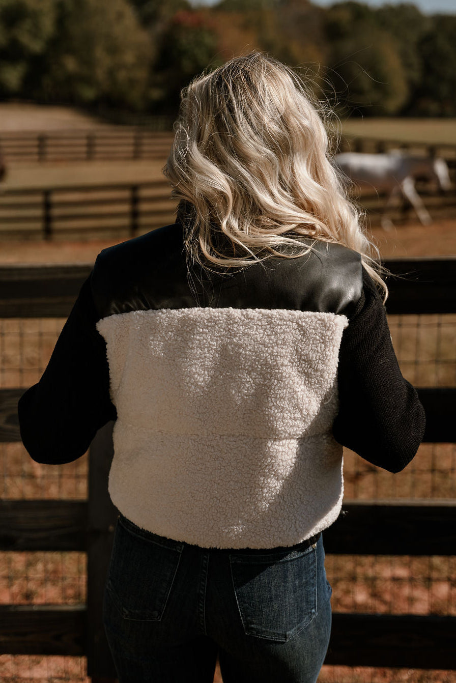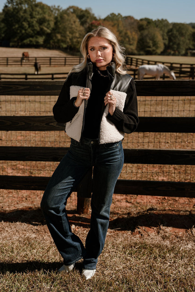 Layla Cream Shearling & Black Faux Leather Vest