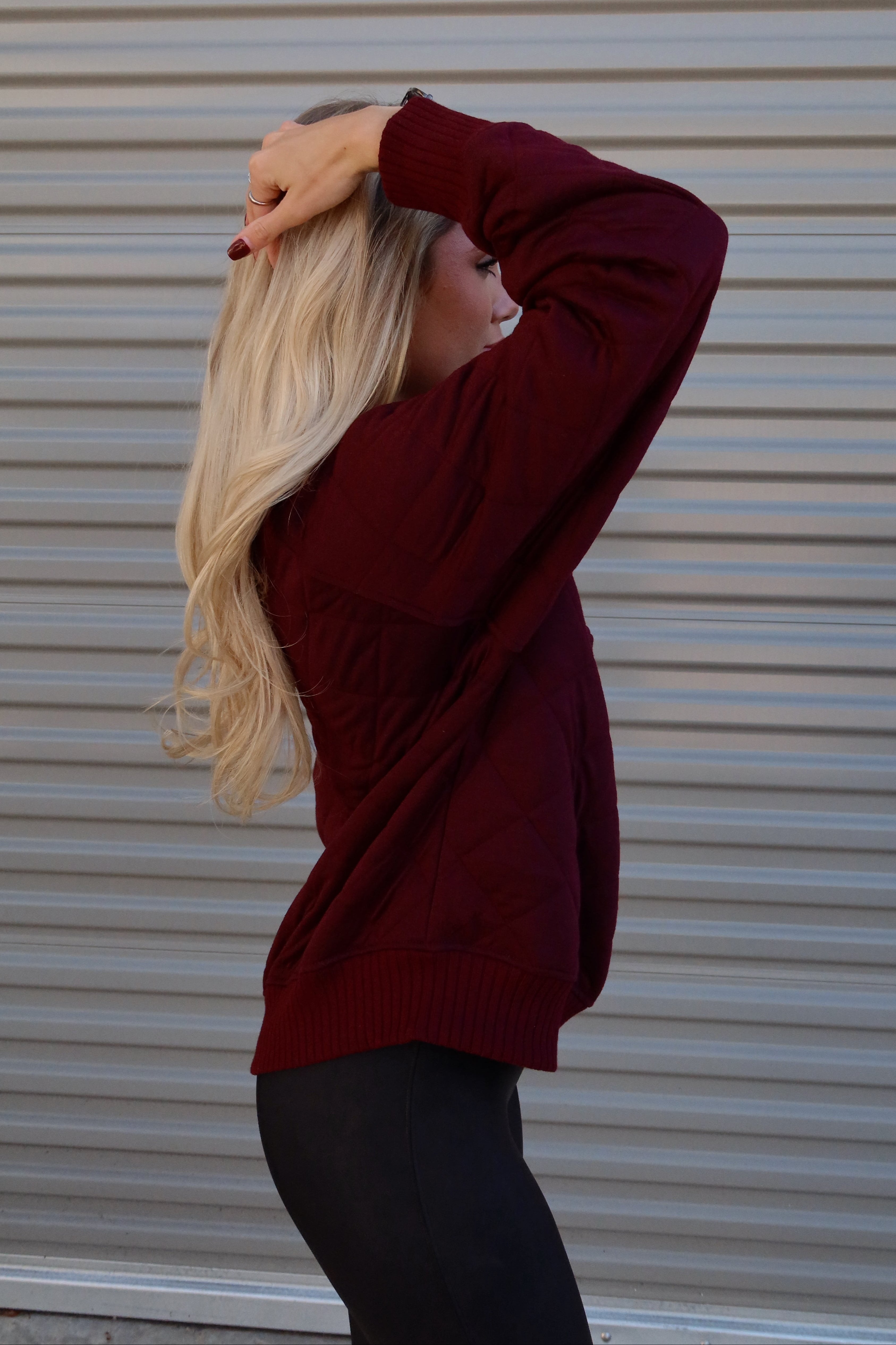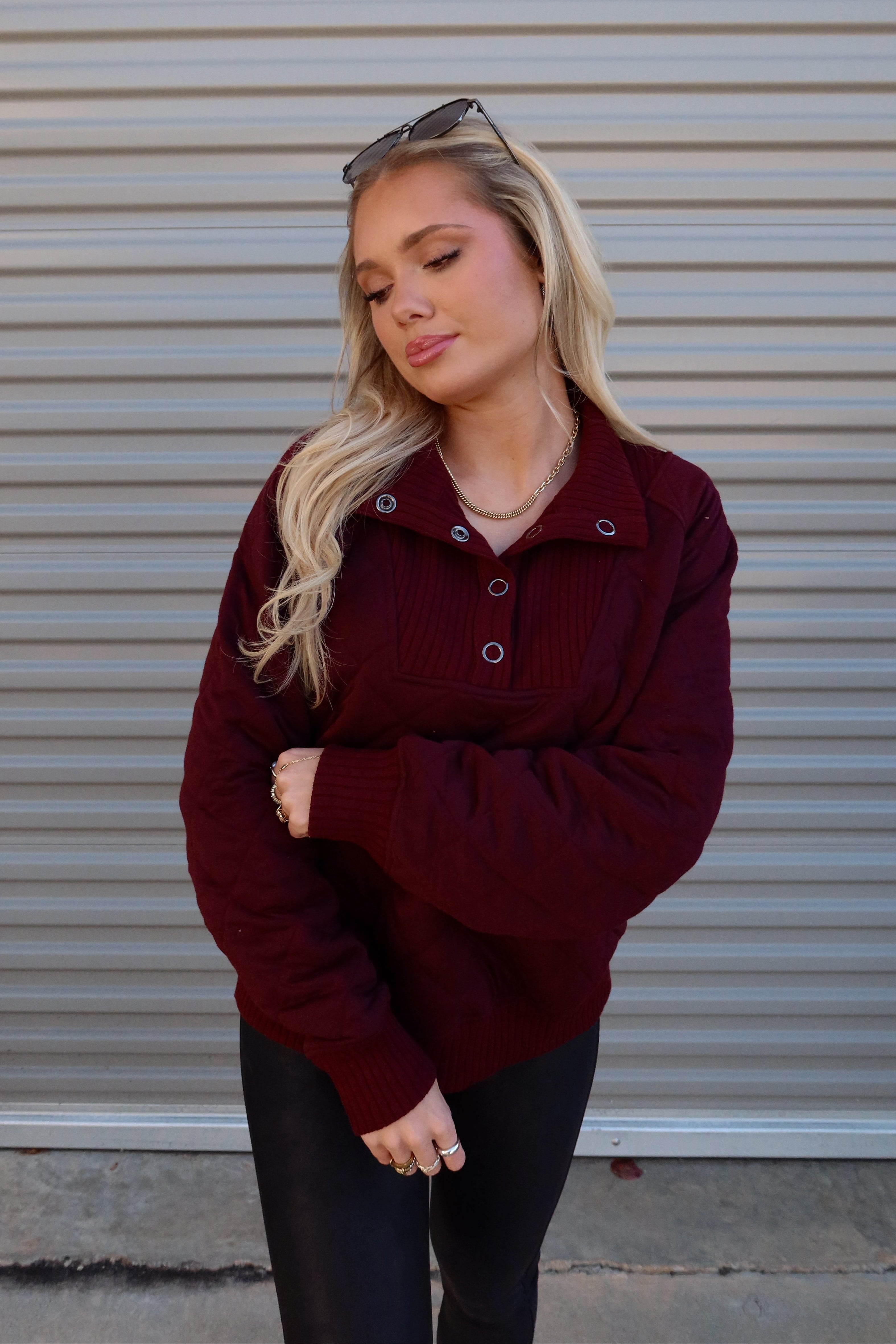 Lena Burgundy Quarter Button-Up Sweatshirt