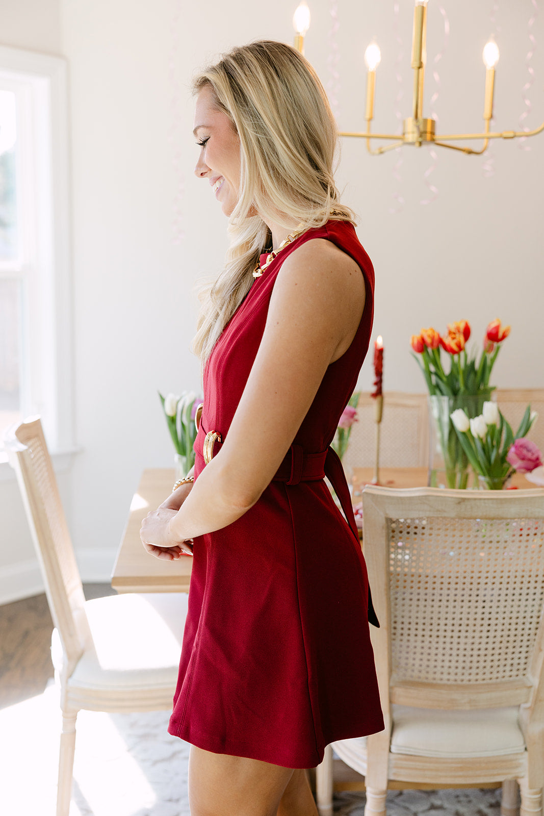 Liza Crimson Belted Mini Dress