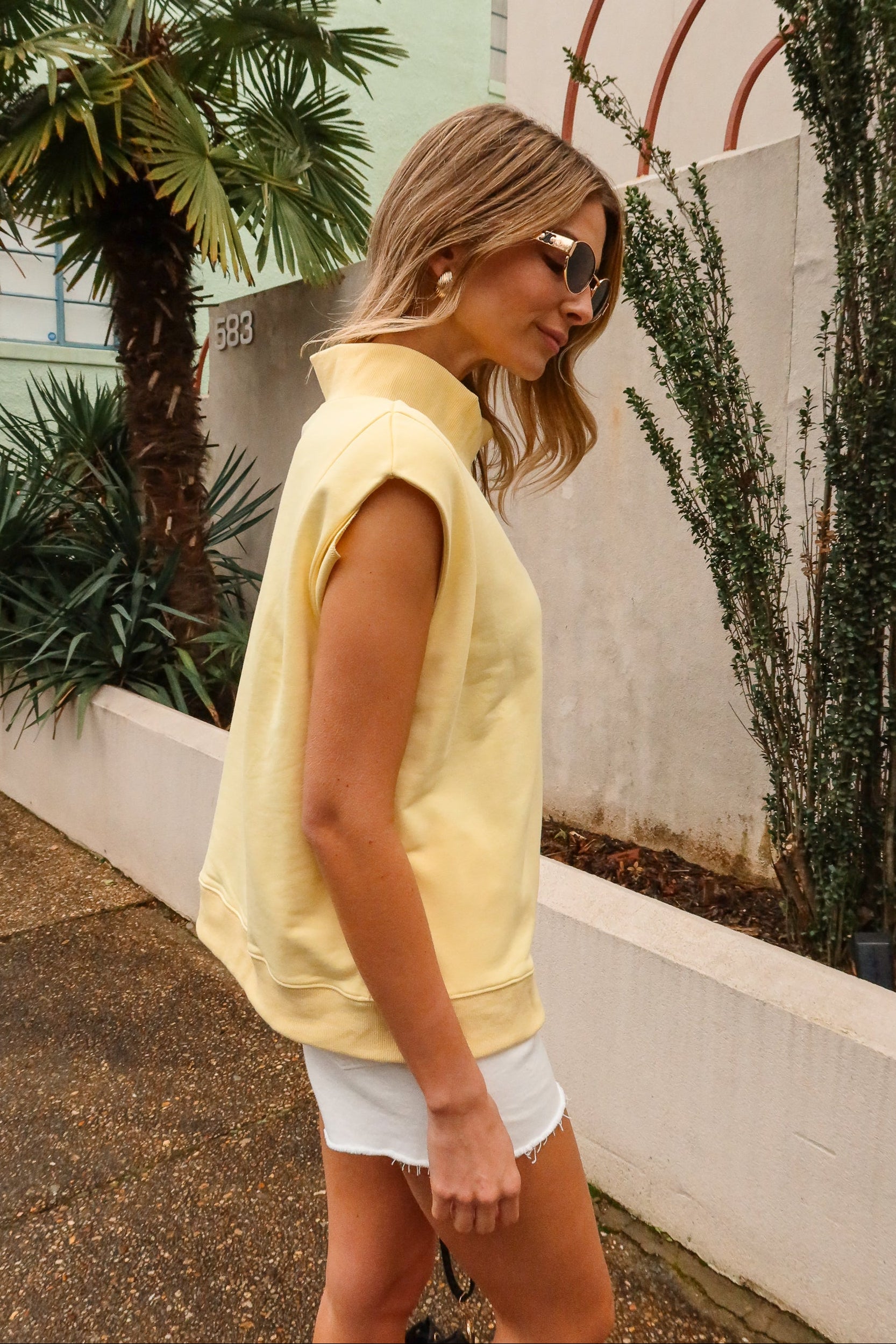 Bright, modern, and effortlessly chic, the Loren Yellow Sleeveless Mock Neck Top is a versatile staple for warm-weather styling. Crafted from lightweight yellow fabric, this sleeveless top features a flattering high neckline and ribbed hem for subtle structure. The soft material ensures comfort while maintaining a polished, streamlined look.