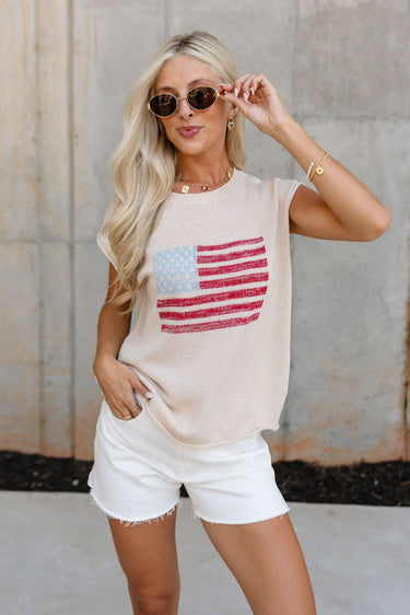 Lucy Cream Knit American Flag Tank