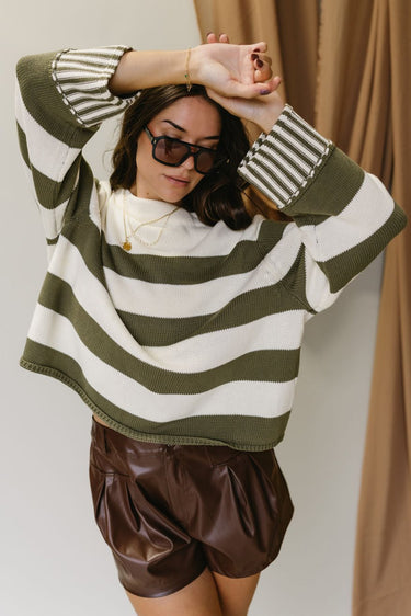 Lyra Olive & White Stripe Sweater