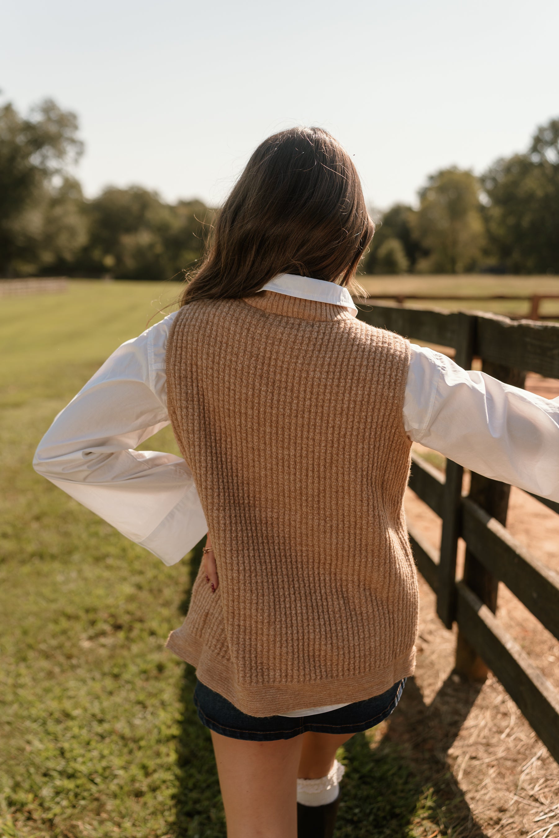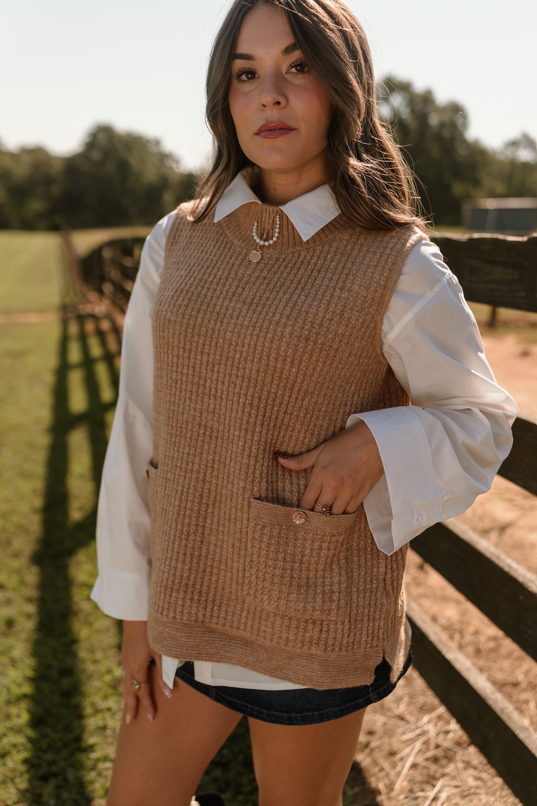 The Mabel Beige & Gold Button Vest is a stylish and versatile layering piece that effortlessly elevates any outfit. Made from a soft beige knit fabric, this sleeveless vest is as comfortable as it is chic. It offers a lightweight layer that’s perfect for transitioning between seasons.