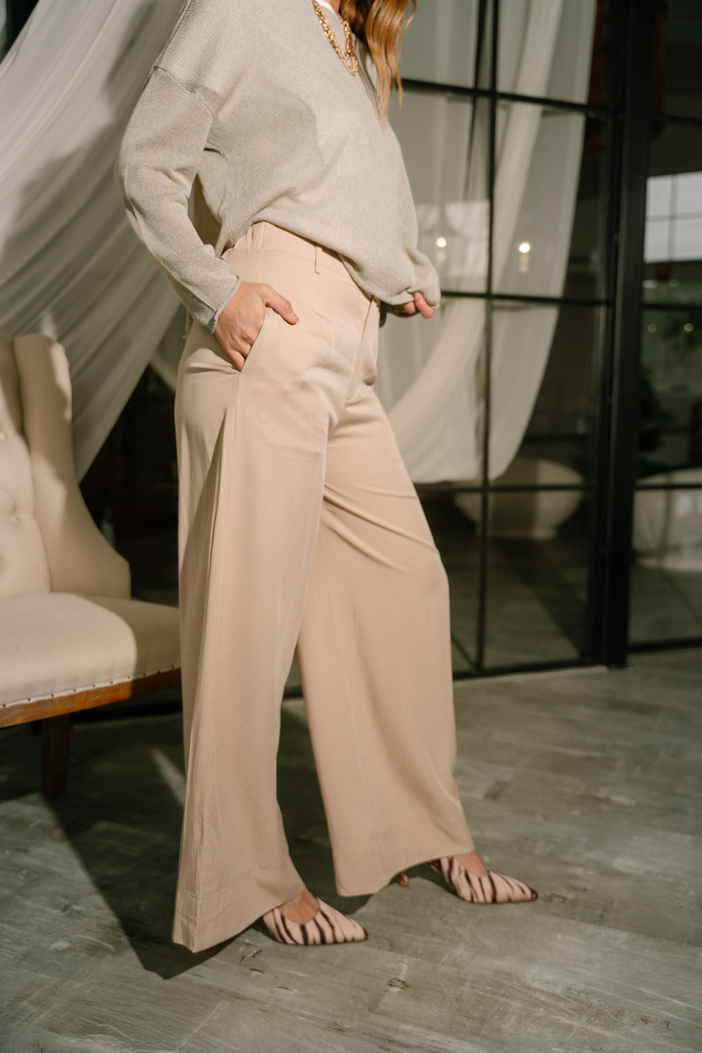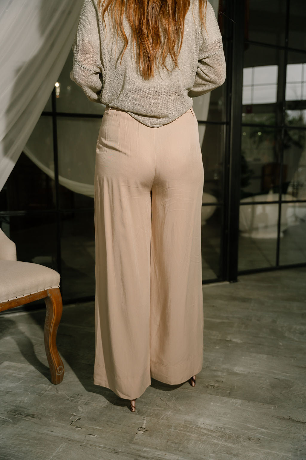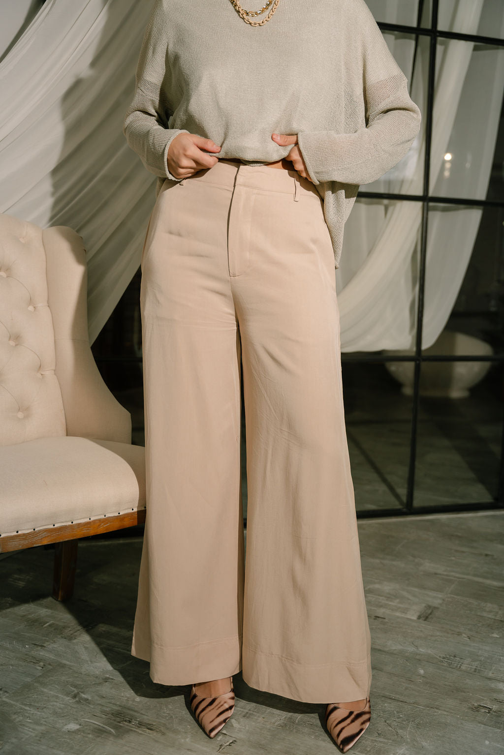 The Maisie Beige Wide Leg Pants are a timeless staple designed for effortless wear and everyday versatility. Made from beige lightweight fabric, these pants offer a breathable feel with a polished look that works for both casual and dressed-up outfits. The wide leg silhouette creates an easy drape while keeping the style clean and flattering.