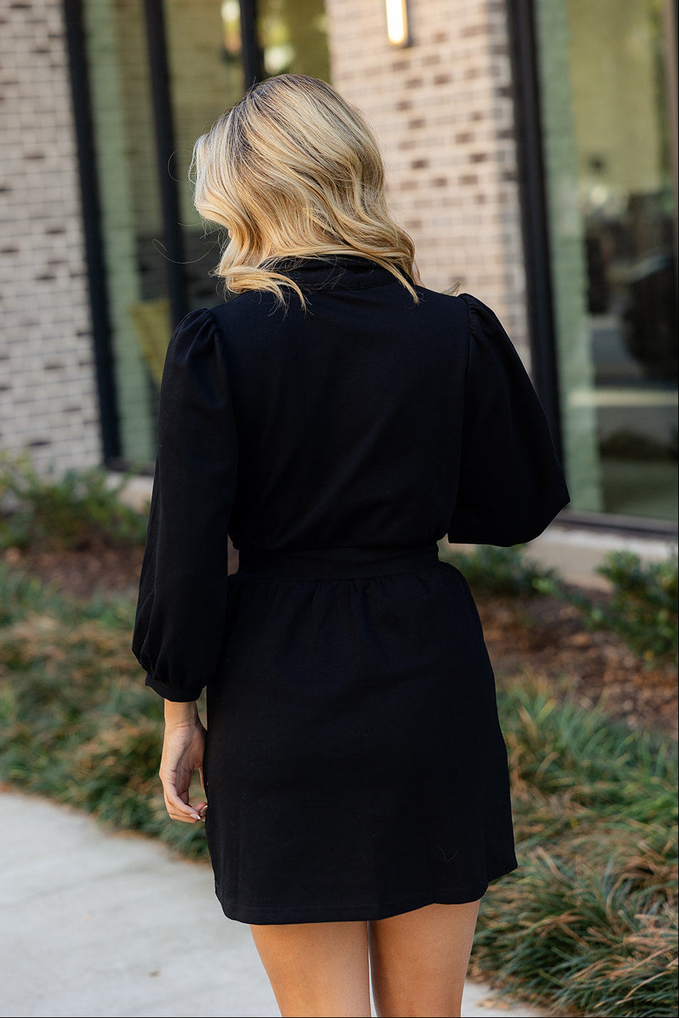 Effortlessly stylish with a sleek attitude, the Natalie Black Gold Zip-Up Mini Dress brings together comfort and modern design. Made from lightweight black fabric, this mini dress features a bold gold front zipper, an elastic waistband for a flattering shape, and functional side pockets. The high neckline and long sleeves keep the look refined, making it the perfect choice for casual outings, nights out, or everyday chic.