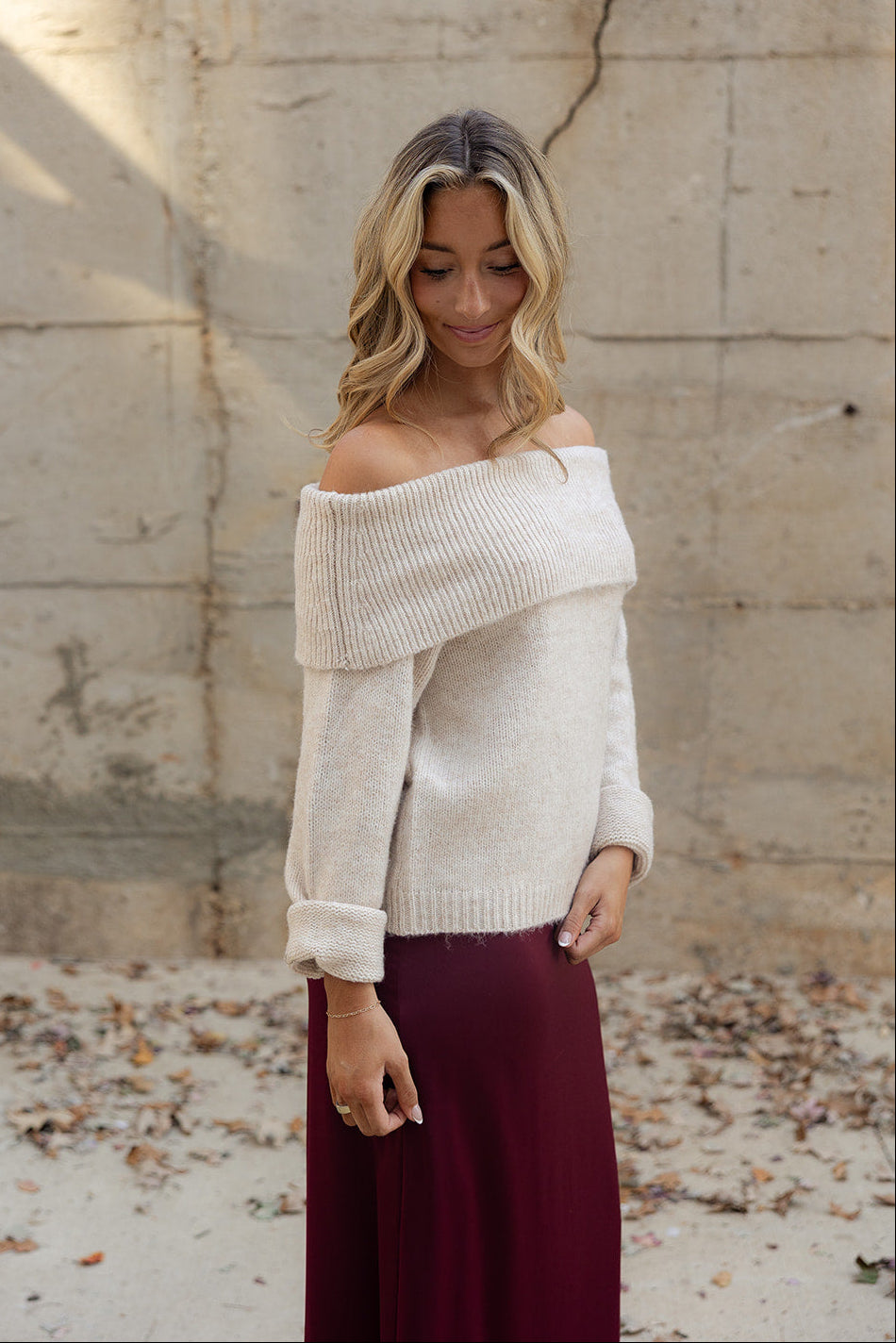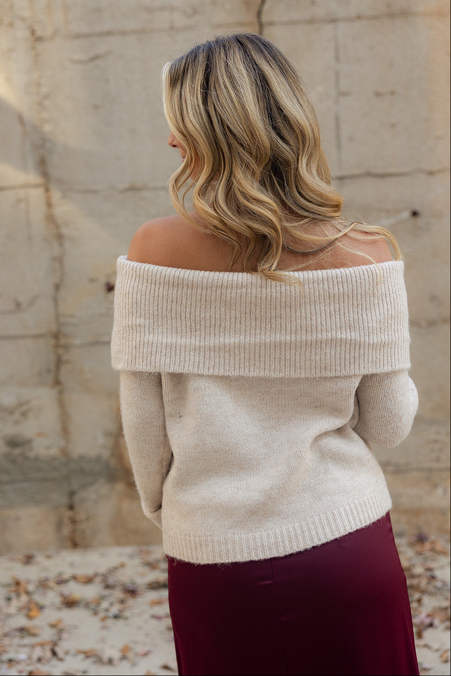 Effortlessly chic and cozy, the Noelle Oatmeal Off-The-Shoulder Sweater is a versatile staple for any wardrobe. Crafted from soft oatmeal knit fabric, this stylish layer features a flattering off-the-shoulder neckline, long sleeves, and a ribbed hem for a polished finish. Perfect for pairing with jeans, skirts, or layered looks, it adds a relaxed yet elegant touch to your everyday style.
