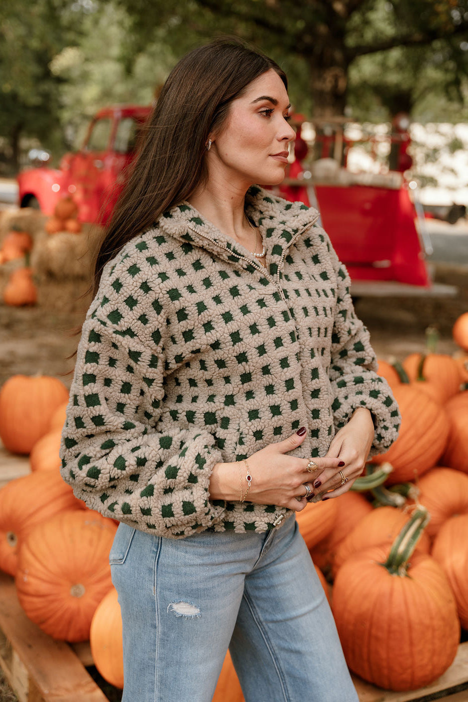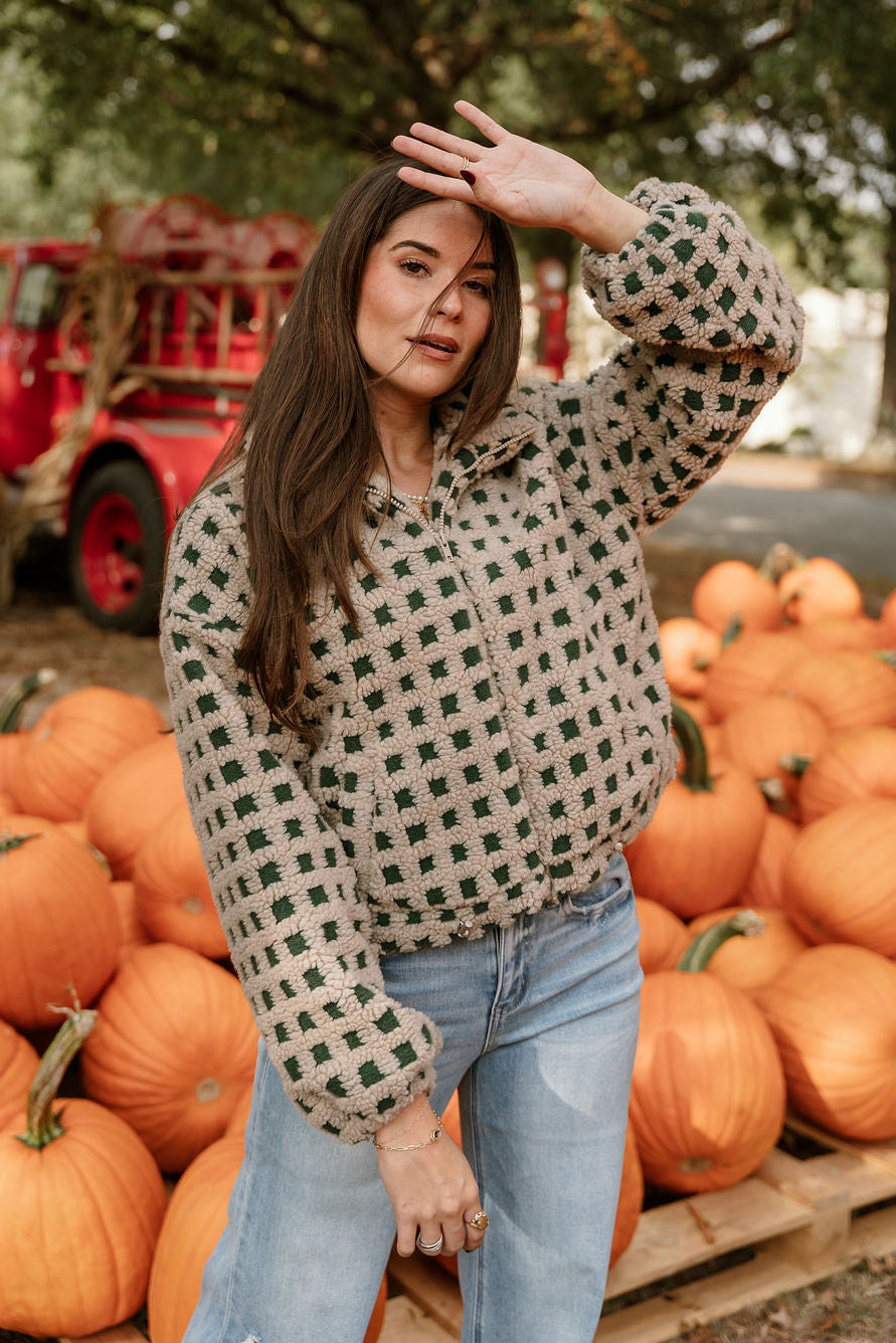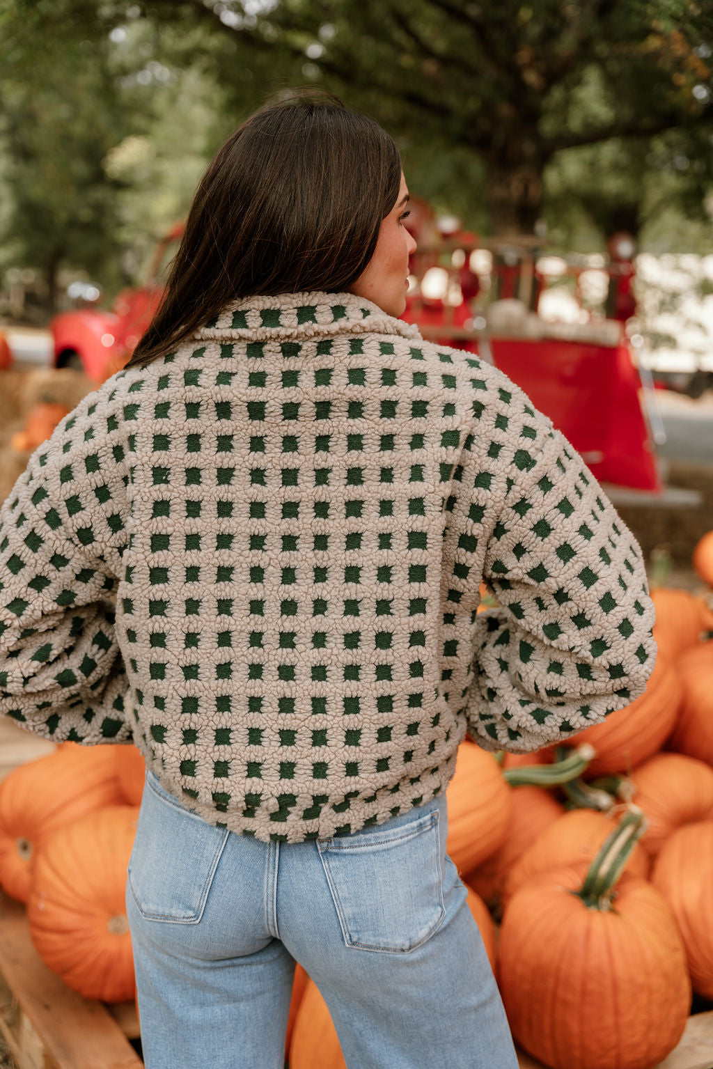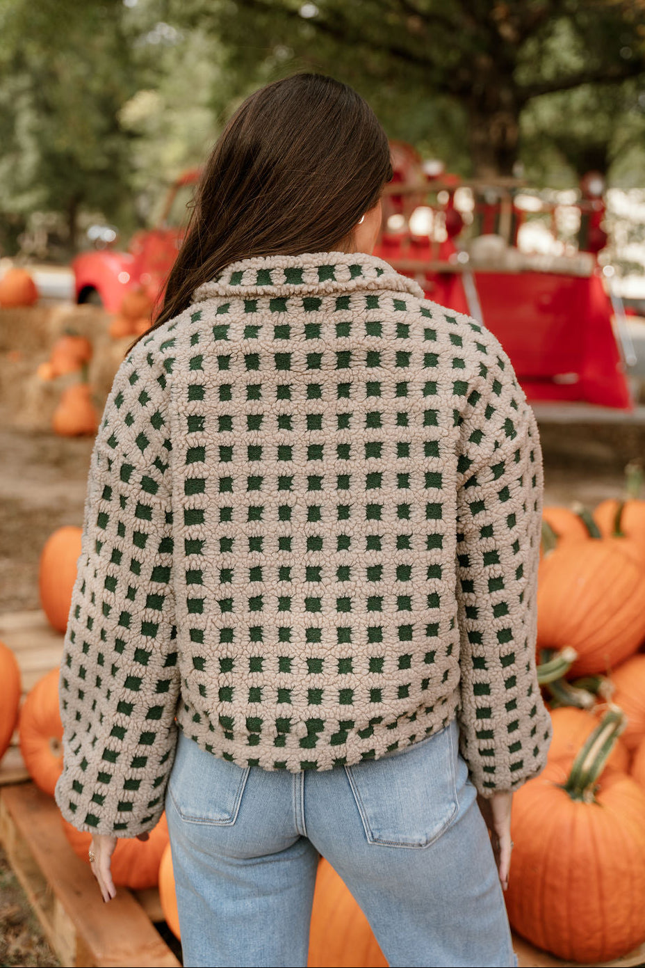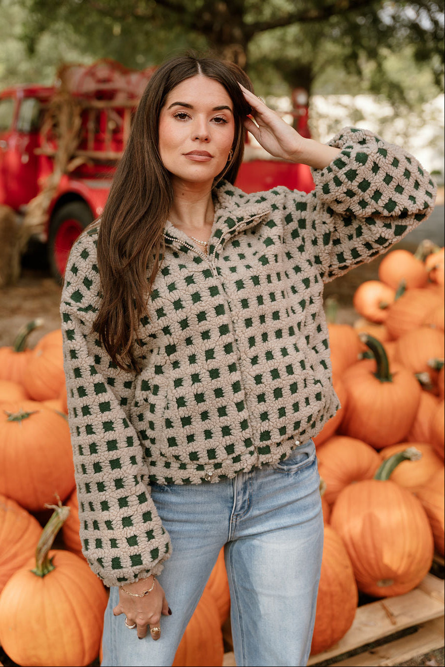 Stay cozy in style with the Nora Taupe & Green Shearling Plaid Jacket—a cold-weather essential with a bold twist. Designed with ultra-soft taupe and green shearling fabric, this jacket features a classic plaid print that brings a fresh, elevated look to your outerwear collection.