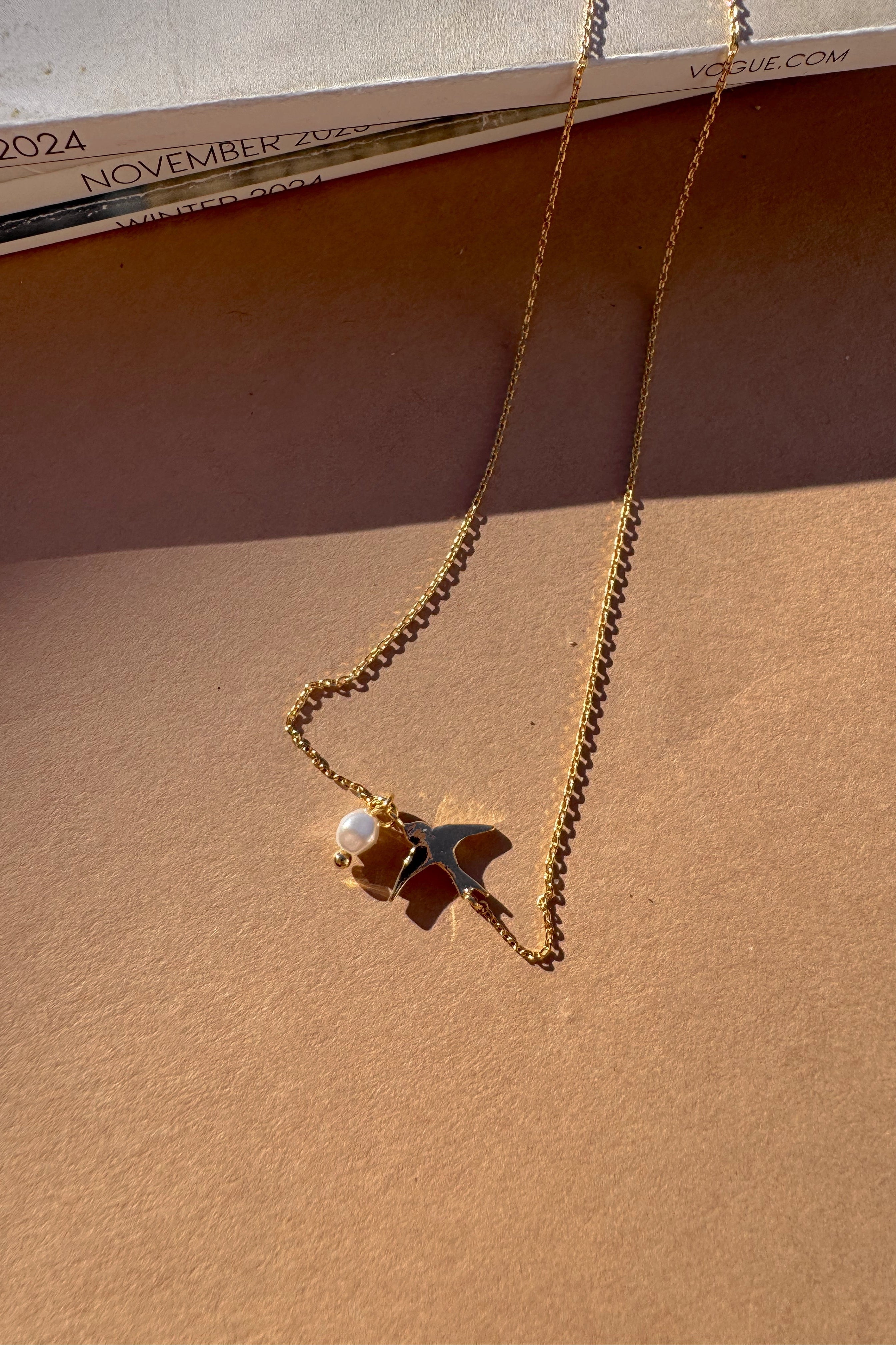 Nyla Gold Bird & Pearl Necklace