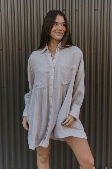 The On Cloud Nine Dress is a versatile and stylish addition to your wardrobe. This light grey mini dress features soft polyester fabric that offers comfort and durability. Because of its mini-length hem, the dress shows off your legs while maintaining a chic look.