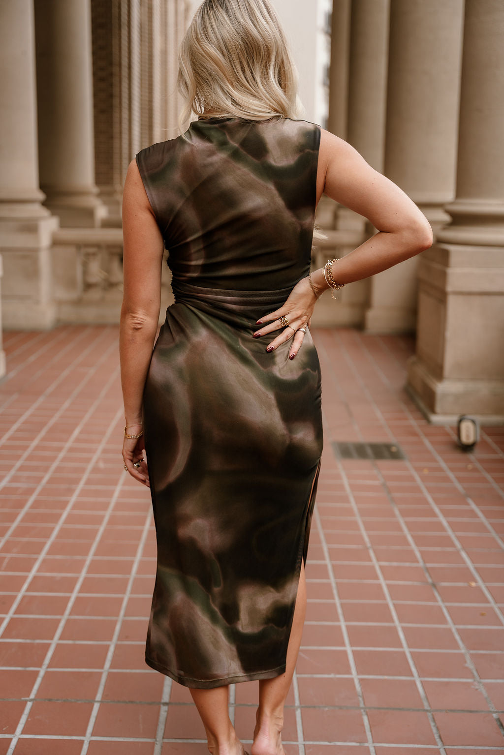 Make a sophisticated statement in the Palmer Olive Multi Mesh Midi Dress, where modern elegance meets flattering design. Crafted from dark olive multi mesh fabric, this dress offers a rich blend of earthy tones and soft texture that effortlessly contours the body. The ruched sides create a beautifully gathered effect, enhancing your silhouette with subtle dimension and a comfortable, body-skimming fit.