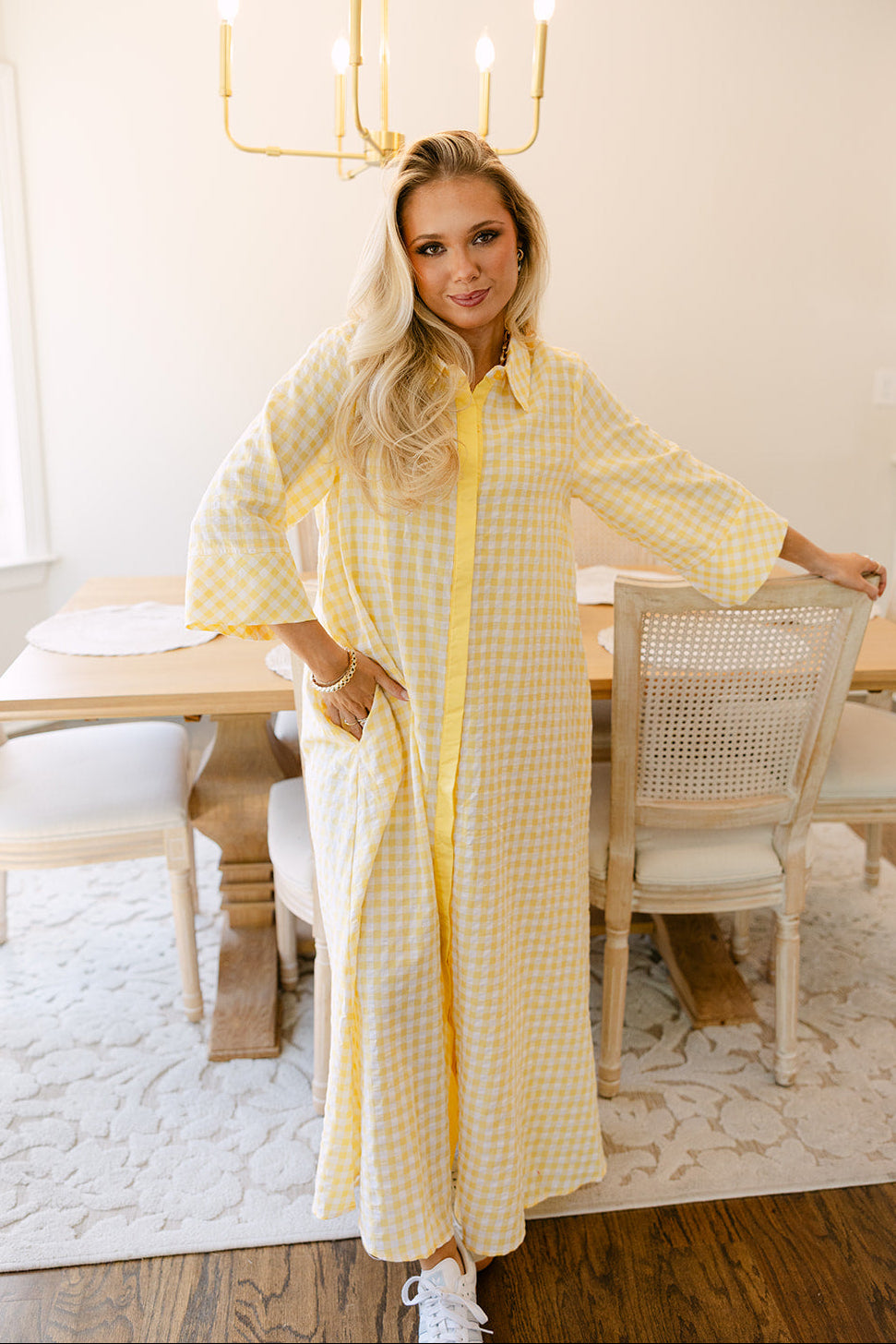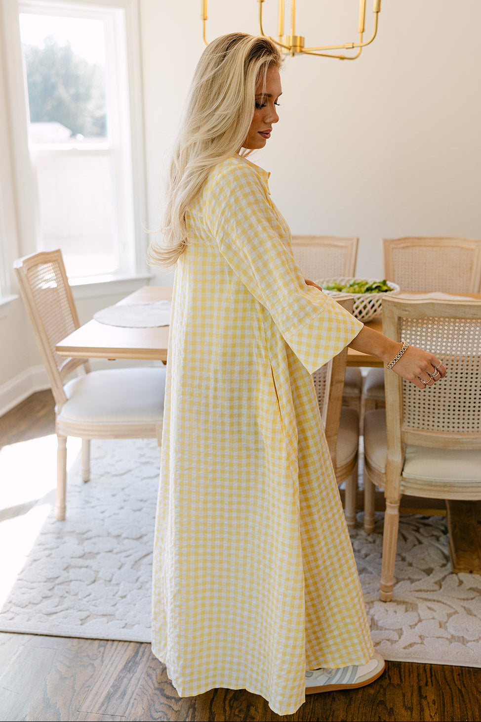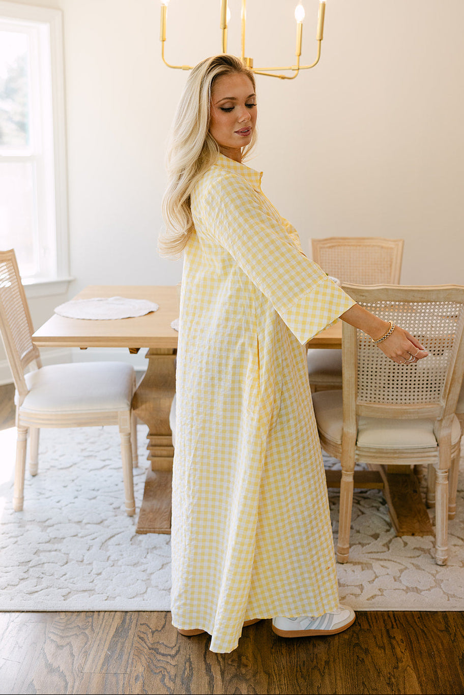 Fresh, playful, and effortlessly chic, the Palmer Yellow & White Gingham Midi Dress is a timeless warm-weather essential. Crafted from lightweight yellow and white fabric, the dress features a classic gingham print that adds a cheerful, vintage-inspired touch.