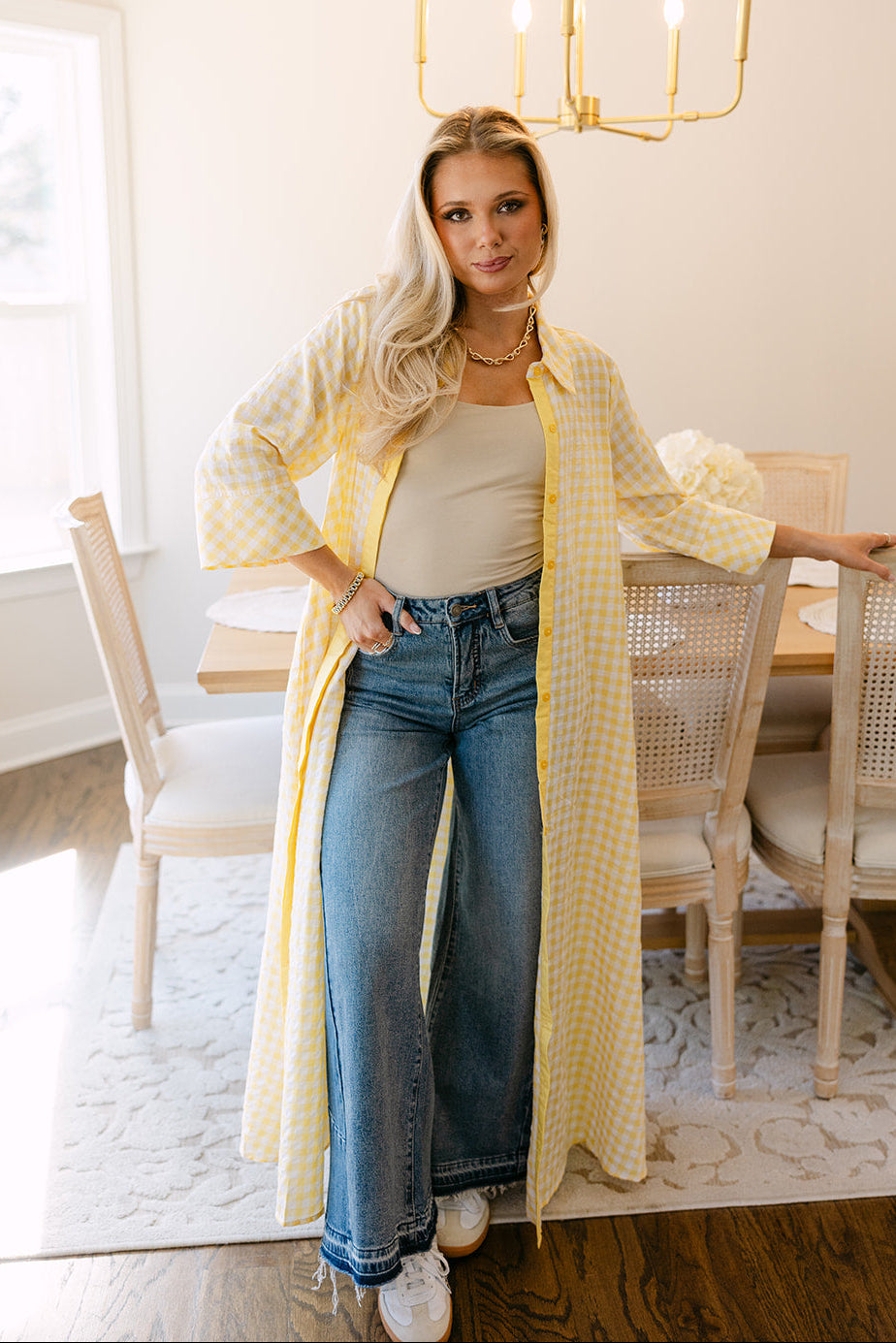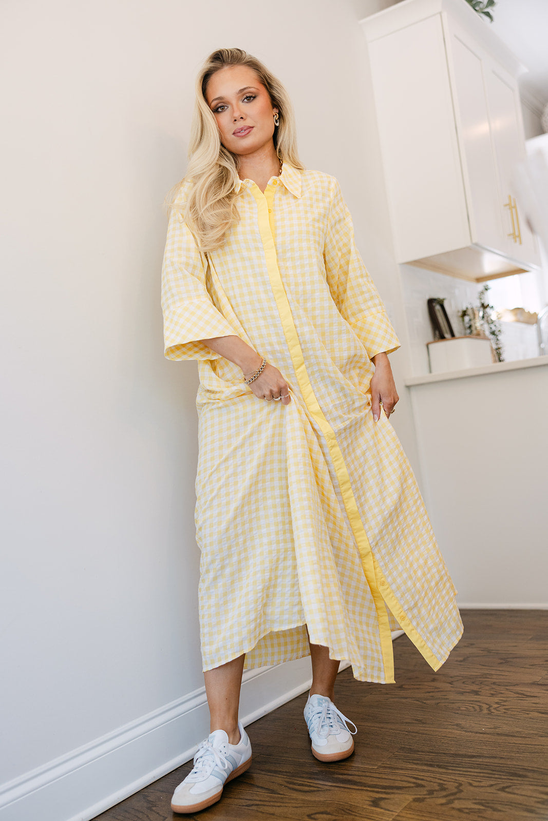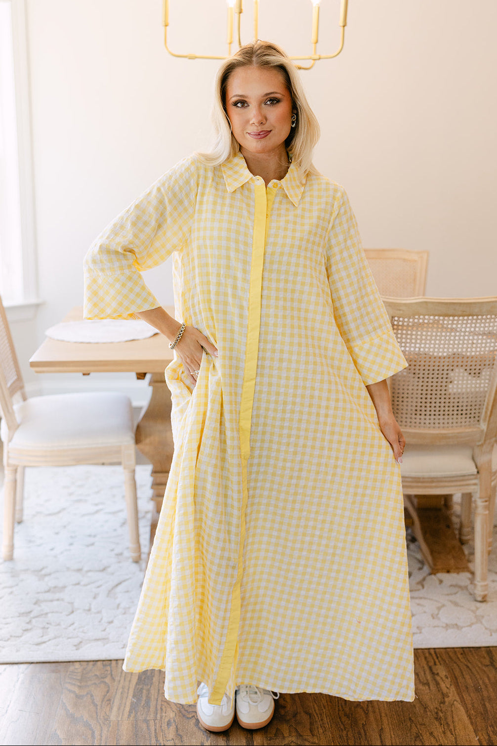 Fresh, playful, and effortlessly chic, the Palmer Yellow & White Gingham Midi Dress is a timeless warm-weather essential. Crafted from lightweight yellow and white fabric, the dress features a classic gingham print that adds a cheerful, vintage-inspired touch.