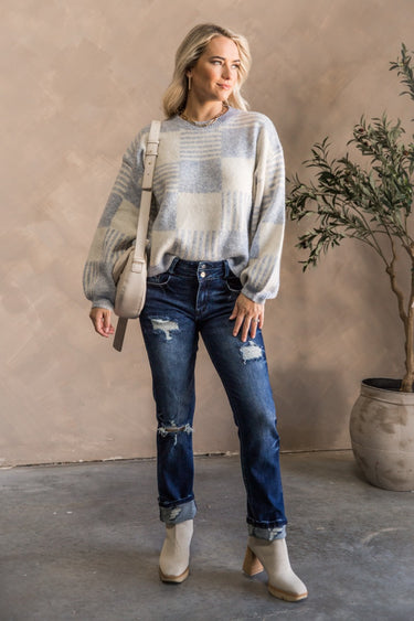 Payton Blue & White Checkered Sweater