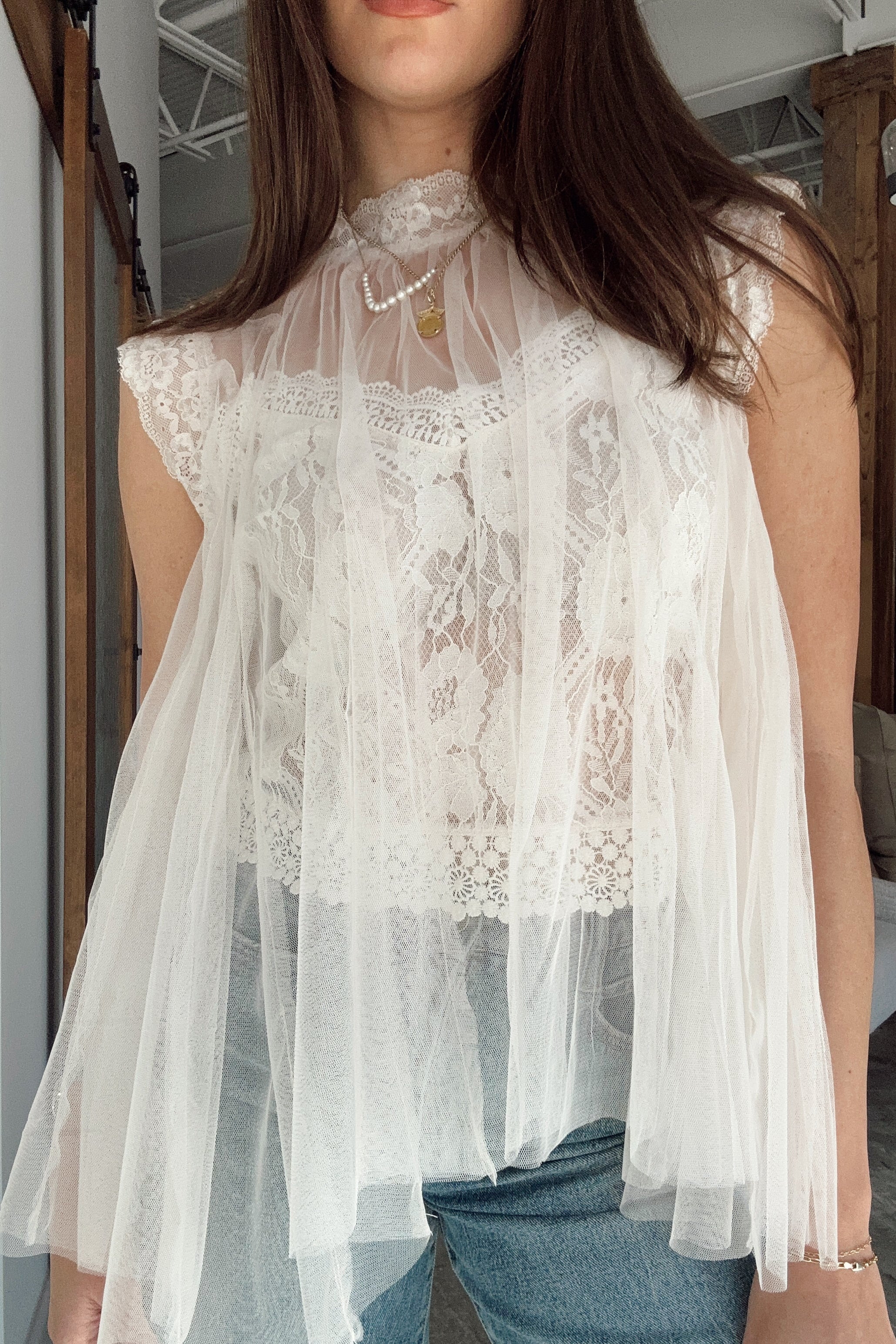 Rachel Ivory Tulle & Lace Flare Tank
