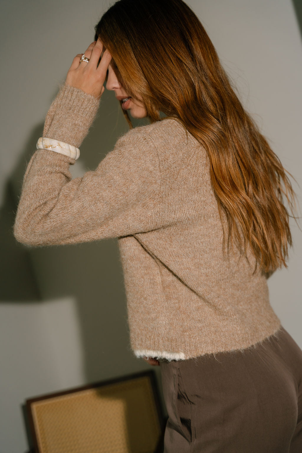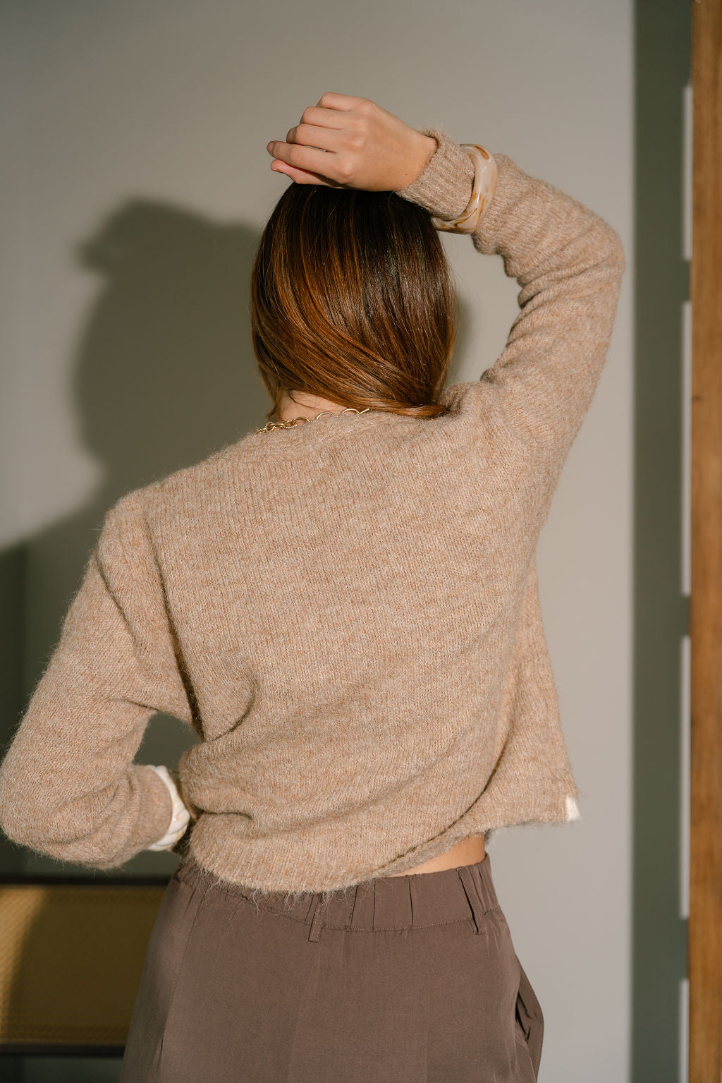 - Taupe knit outer