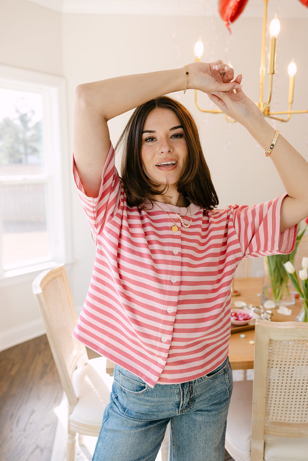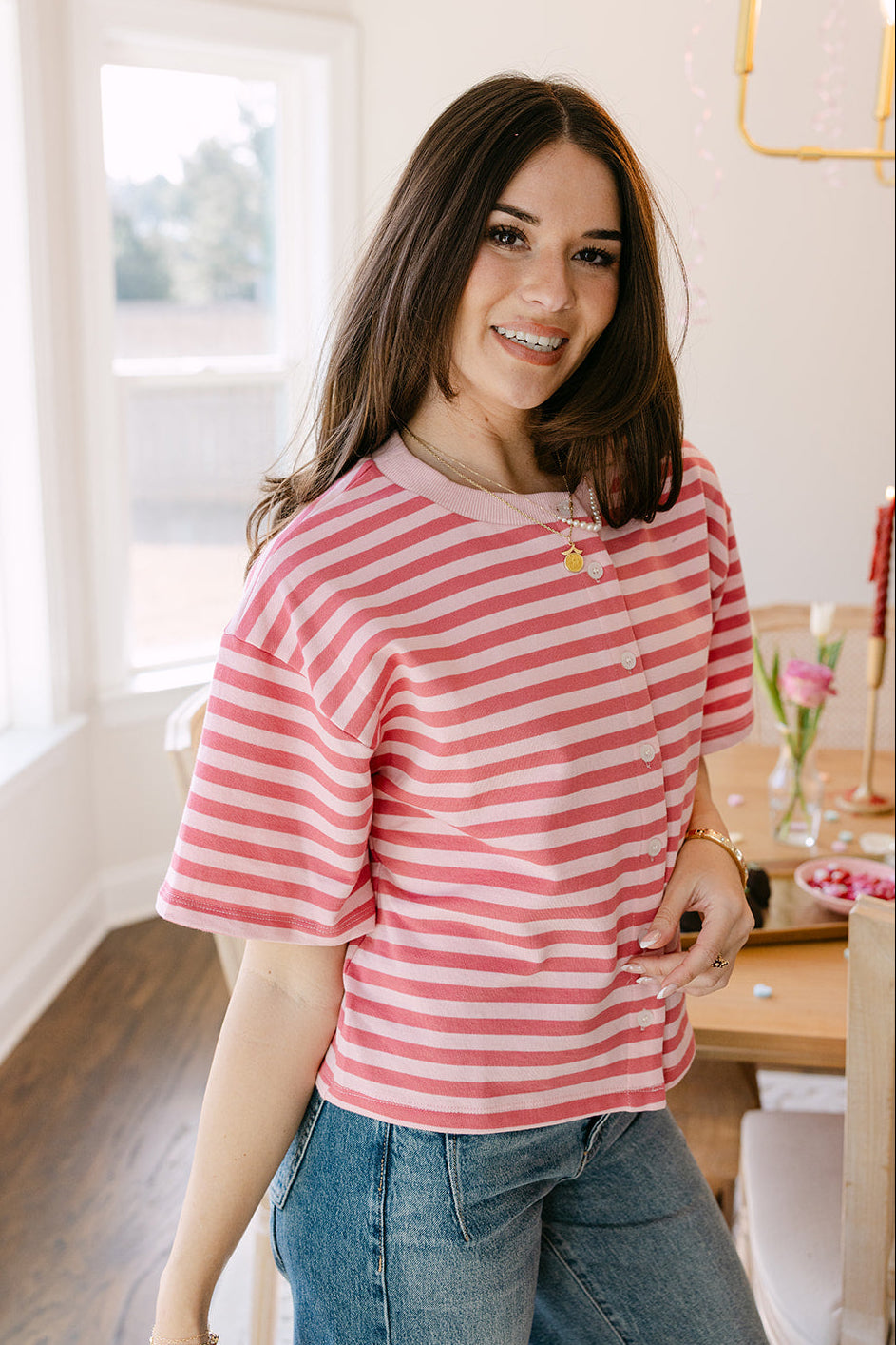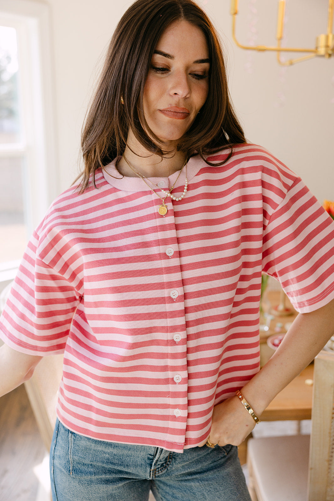 Romy Pink Striped Button-Up Top