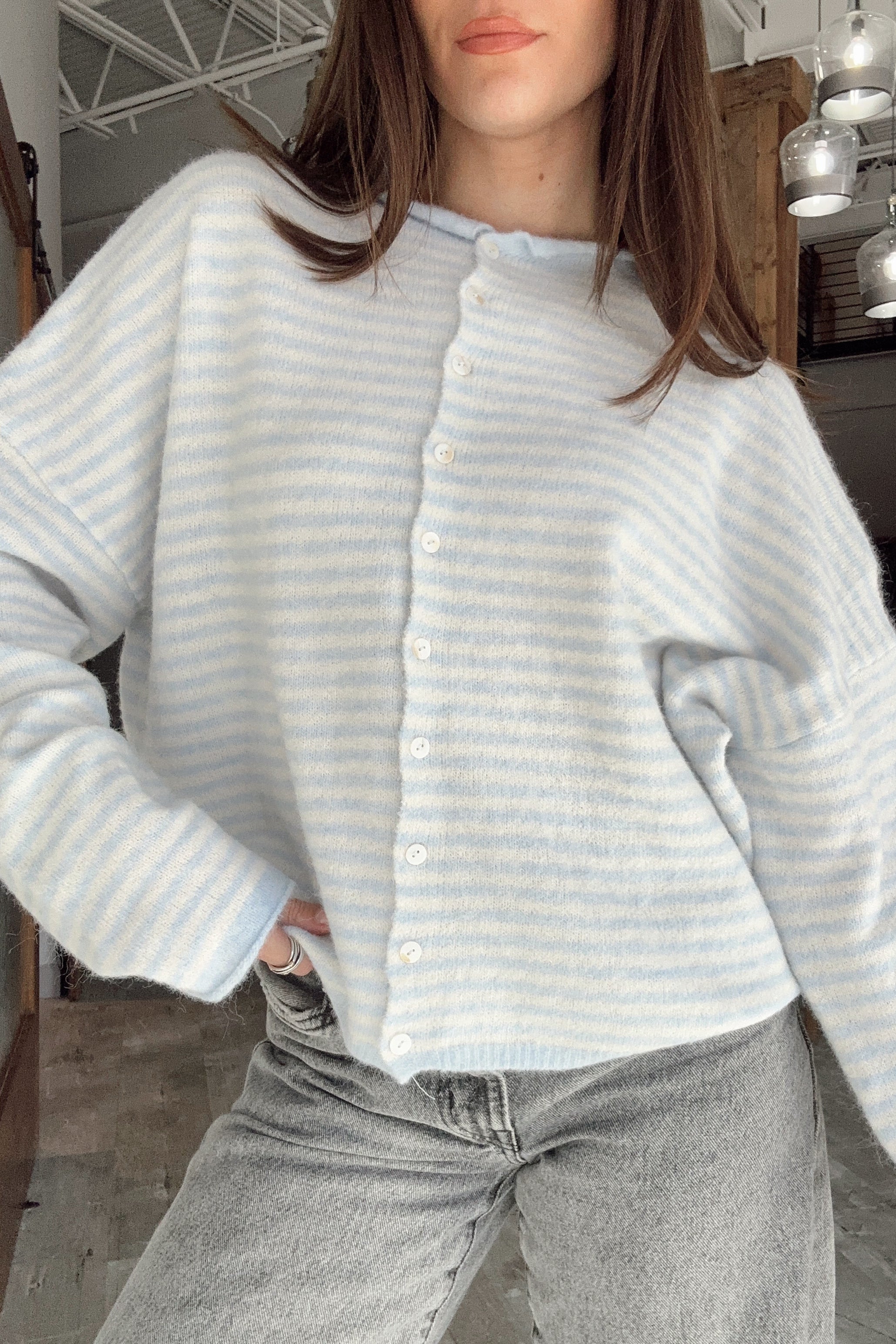 Rowyn Light Blue & Cream Stripe Cardigan