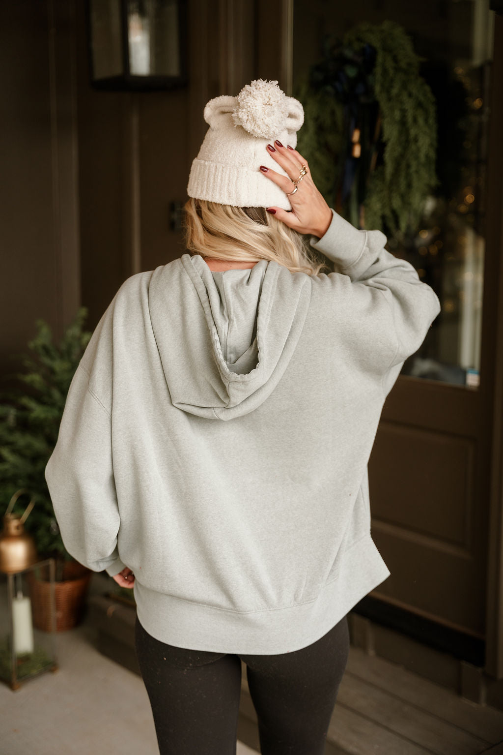 A high neckline and attached hood with adjustable drawstrings offer warmth and versatility, while the front pocket adds a classic touch and convenient space for small essentials. Lightweight yet cozy, Rowyn is the perfect layer for year-round wear — ideal for morning walks, weekend errands, or curling up at home.