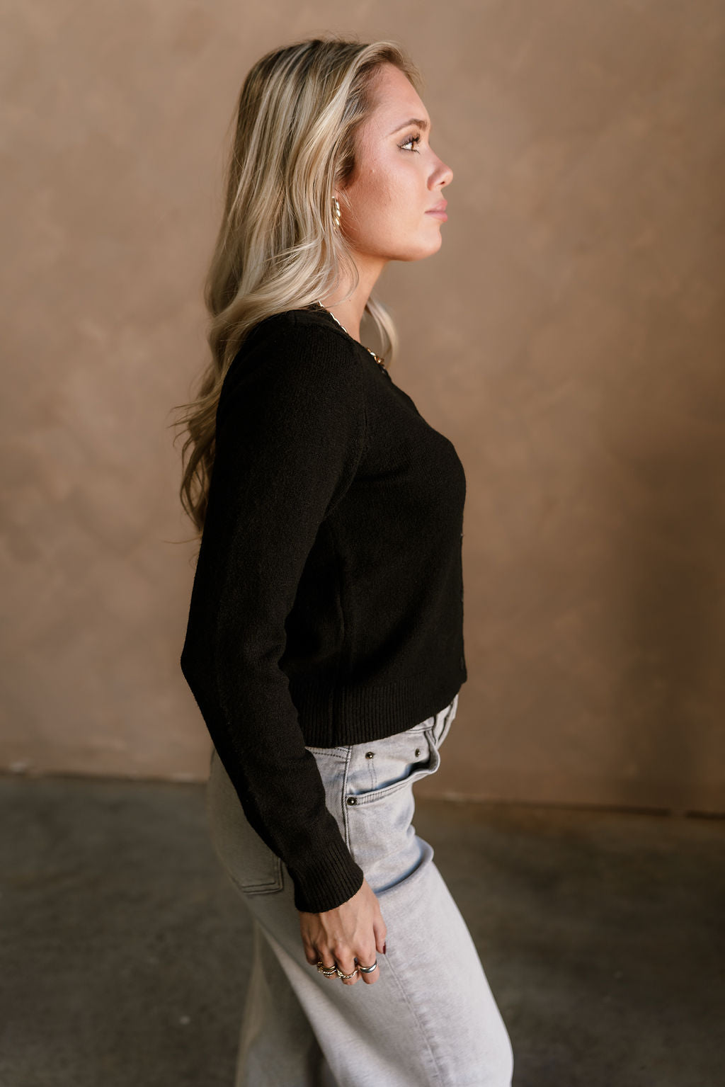 The Sami Black Button Up Cardigan is a timeless, everyday essential crafted from soft black knit fabric that works effortlessly with any outfit. Its classic round neckline and monochrome button-up front create a clean, polished look you can dress up or down. Easy to layer and comfortable to wear, it’s the kind of cardigan you reach for on repeat.