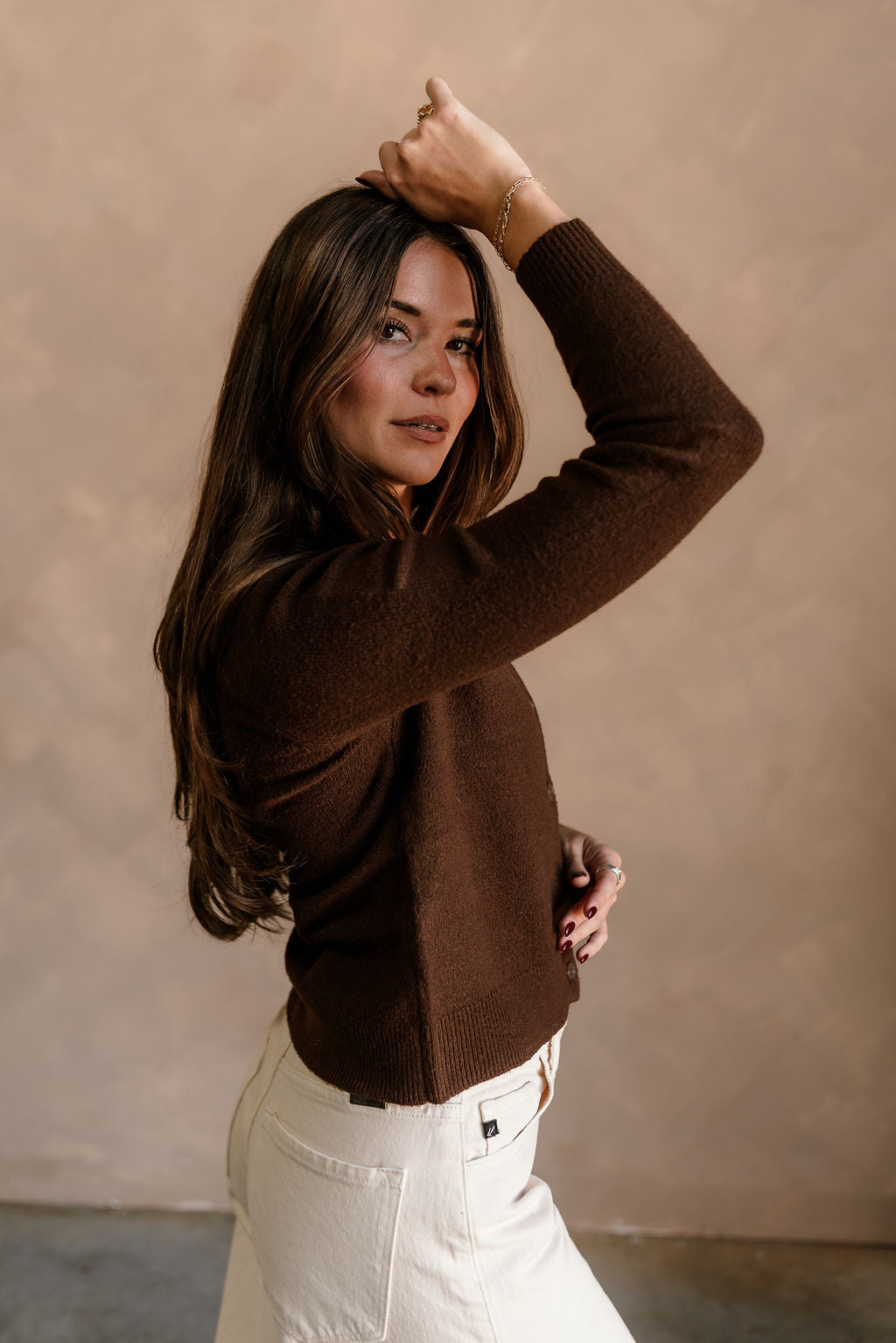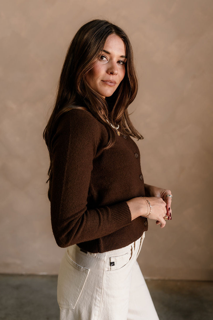 The Sami Dark Brown Button Up Cardigan is a warm, everyday layer made with soft brown knit fabric that feels as good as it looks. Its classic round neckline and monochrome button-up front make it an easy match for both casual and polished outfits, giving you plenty of styling versatility for the season.