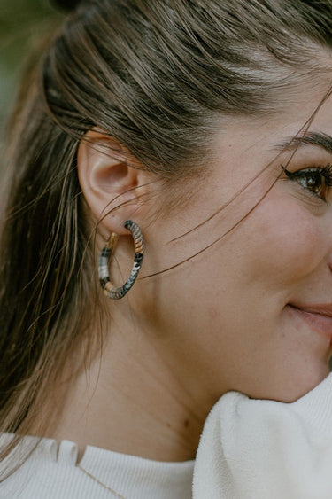 Even better, the multi-colored hoop earrings strike the perfect balance between statement and subtle. Their neutral palette allows them to pair with almost anything in your wardrobe.