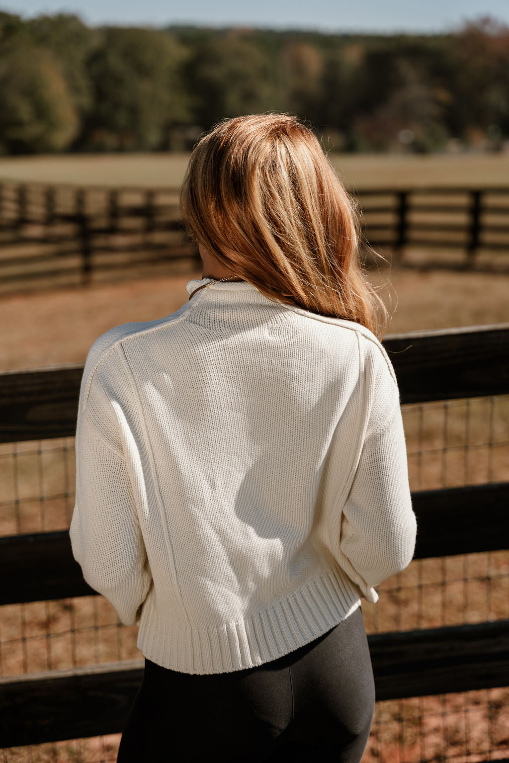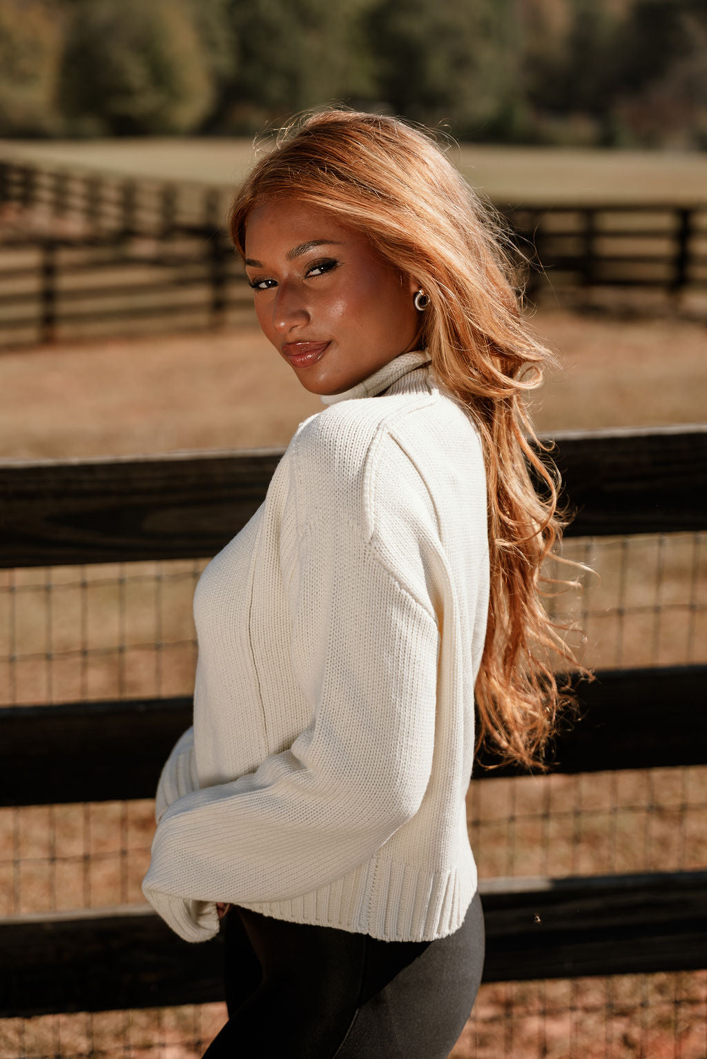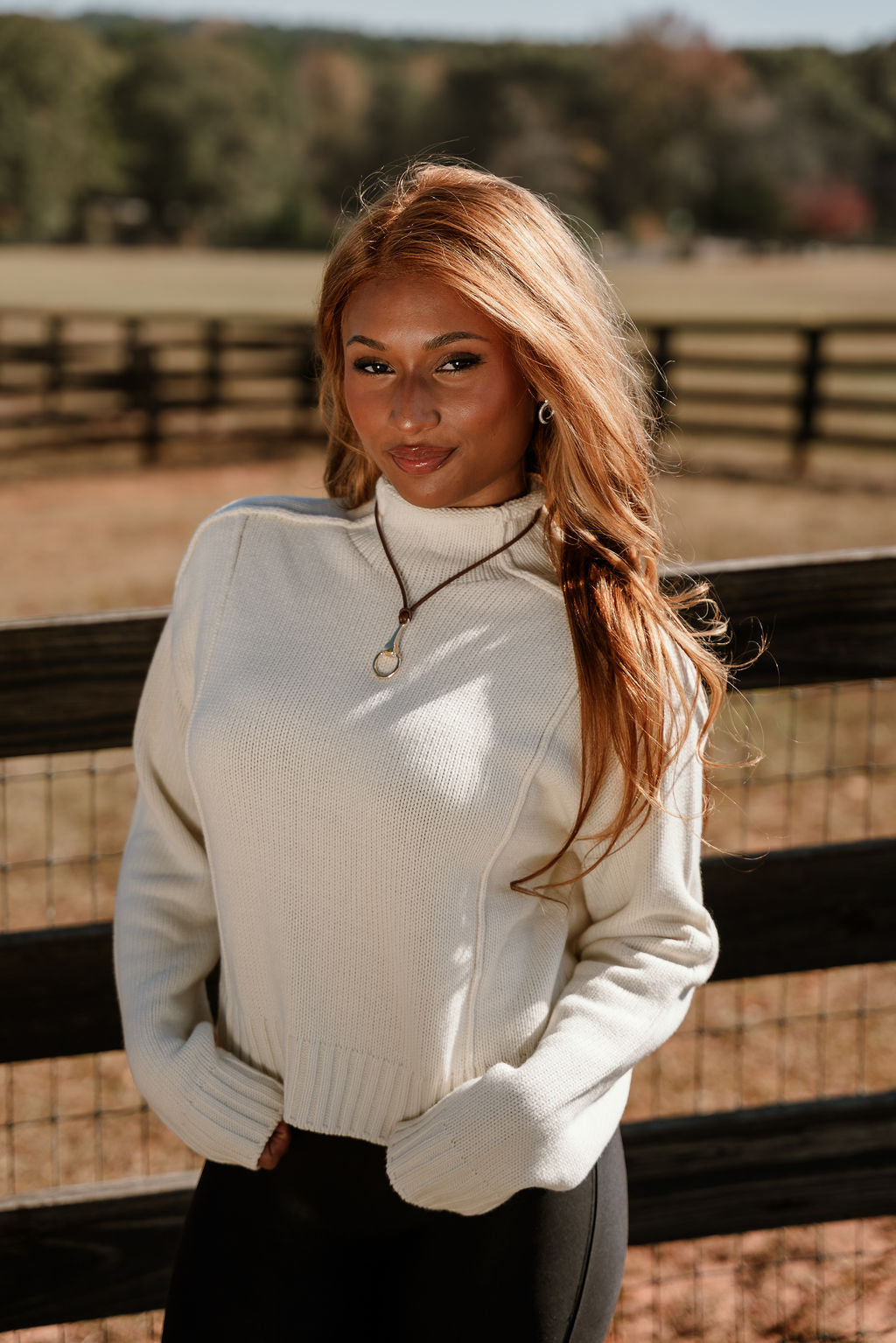 Featuring a high neckline, dropped shoulders, and long sleeves, it offers a relaxed, flattering fit, while ribbed hem and exposed trim details add subtle, stylish accents. Perfect for layering over jeans, leggings, or skirts, the Selah Sweater combines warmth, comfort, and everyday elegance.