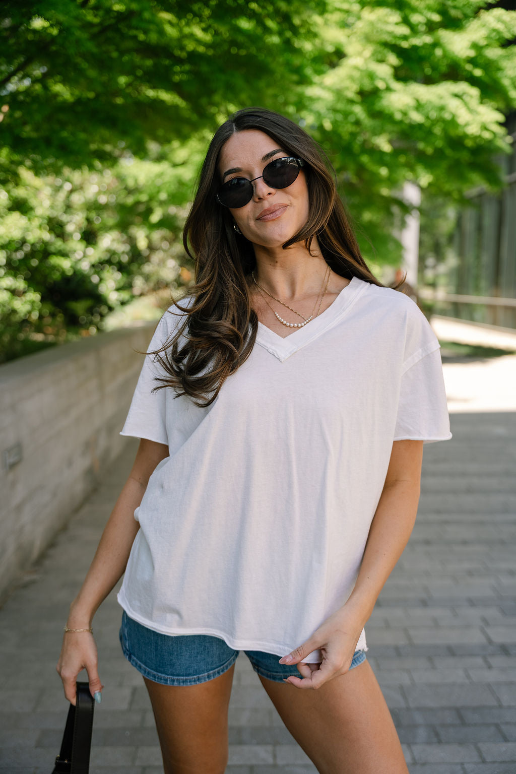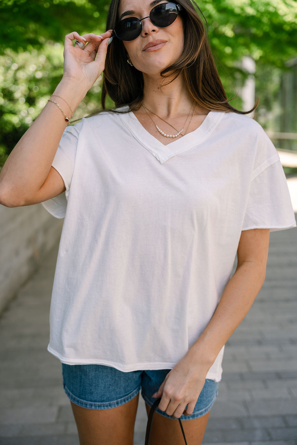 The Selah White V-Neckline Short Sleeve Top is an elevated essential with a laid-back edge. Crafted from soft, breathable cotton, it offers a comfortable, easy fit that’s perfect for everyday wear. The crisp white color keeps the look fresh and endlessly versatile.