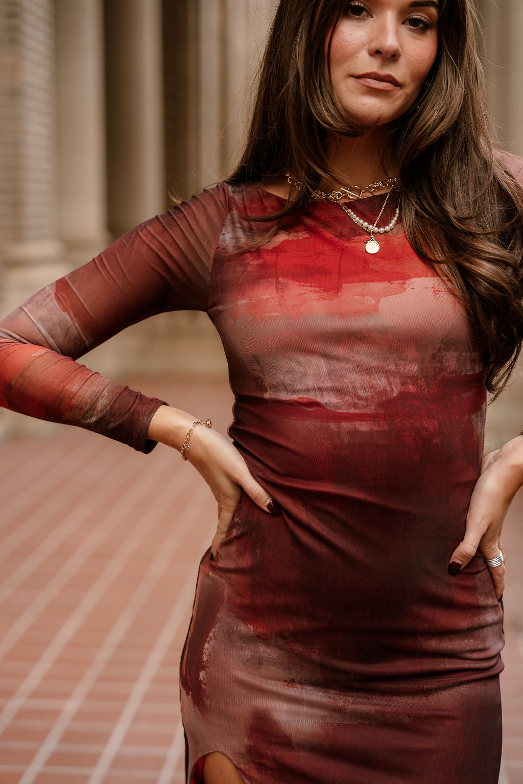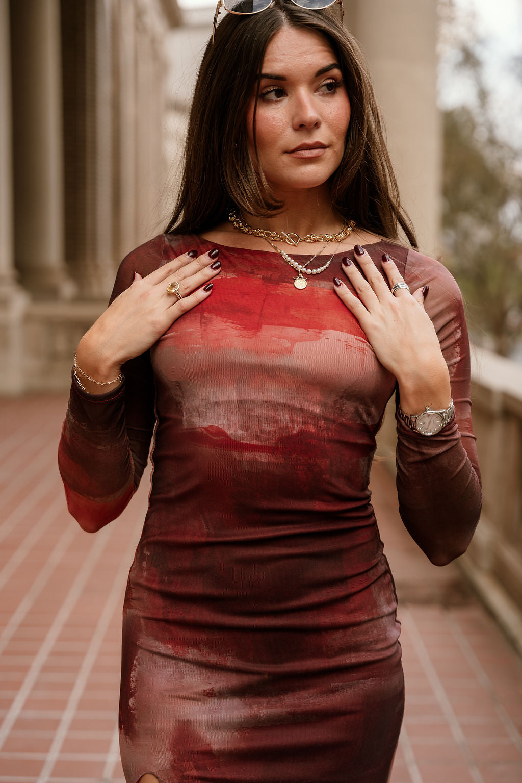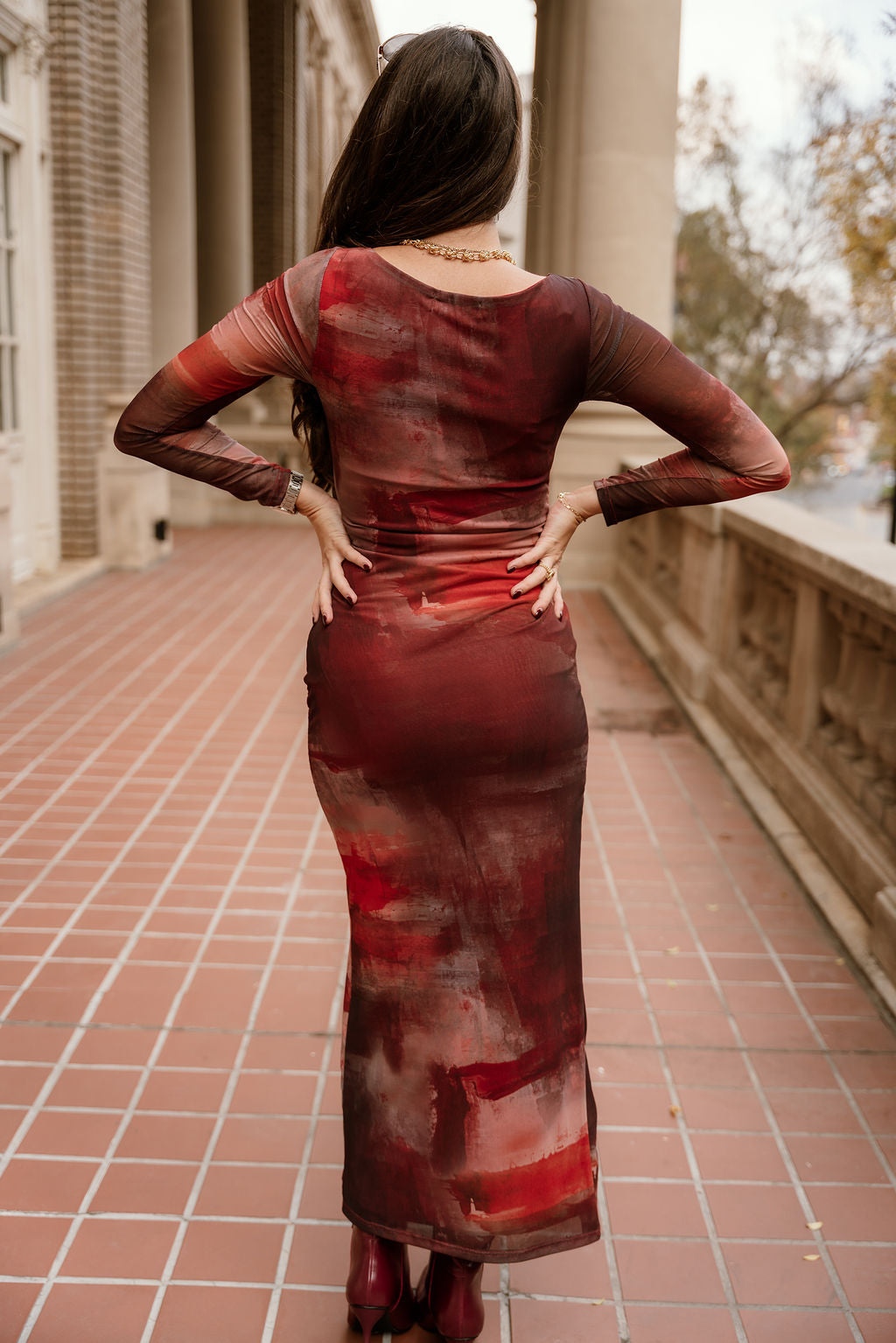 Turn heads with the striking elegance of the Selena Rust Multi Mesh Maxi Dress. Crafted from captivating rust multi mesh fabric, this dress blends rich tones and airy texture for a look that’s equal parts bold and ethereal. Its flowy maxi length creates a graceful silhouette, while the thigh-high side slit adds just the right amount of movement and allure.